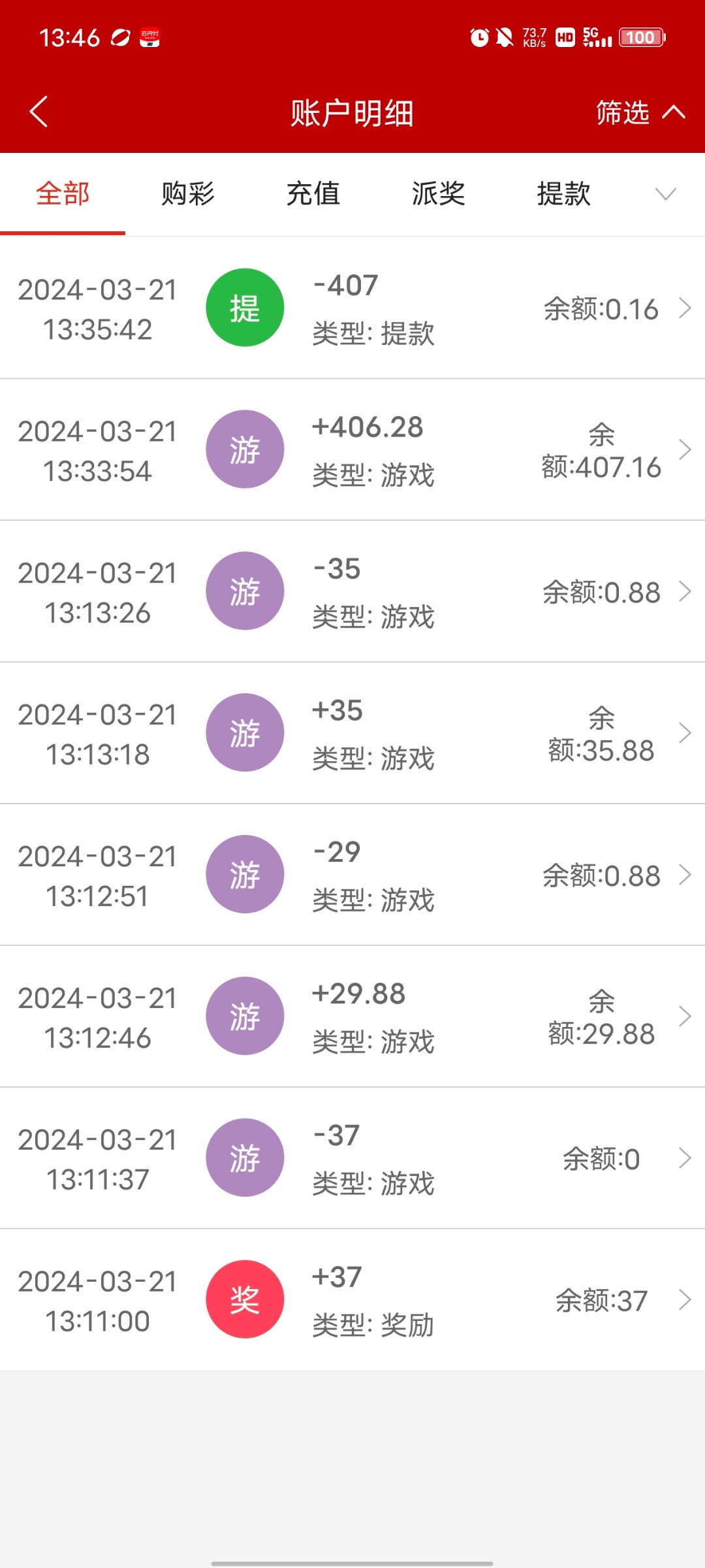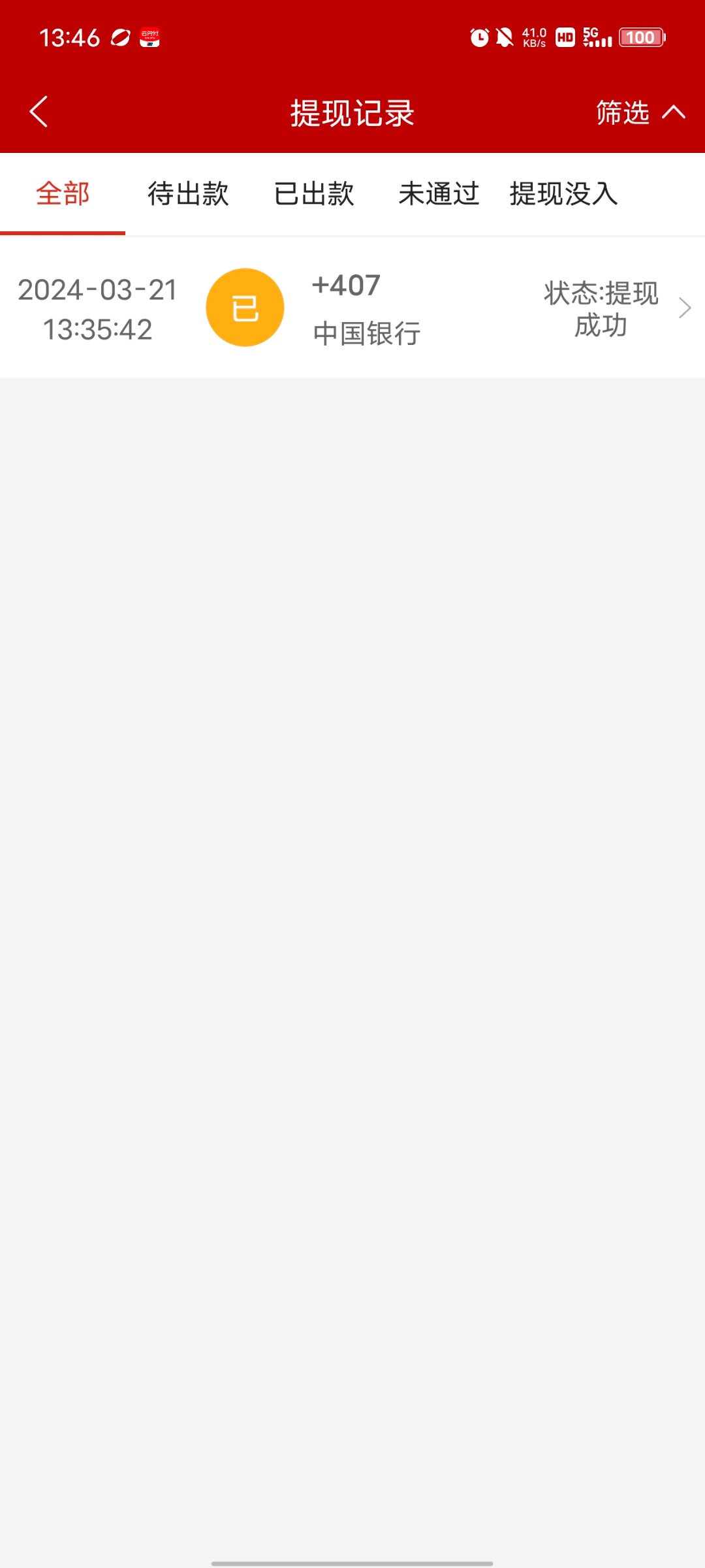 出款了,