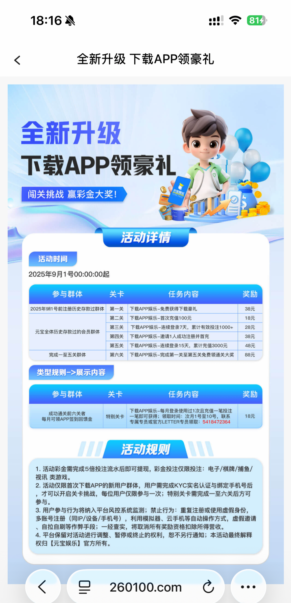 历史存款够一百的,16号可以免费领,领多少随机,看平台。第一天可以免费领取,第二三四天需要充值打流水。后续不充值就只能领取一天。活动去平台看,页面截不了图。