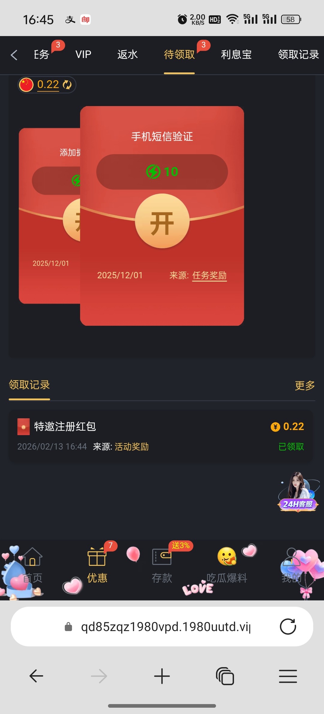 网站4933.com,免费红包有号可以上去看看,就刚出来的时候我充过。今天上去试了一下抢了8块。