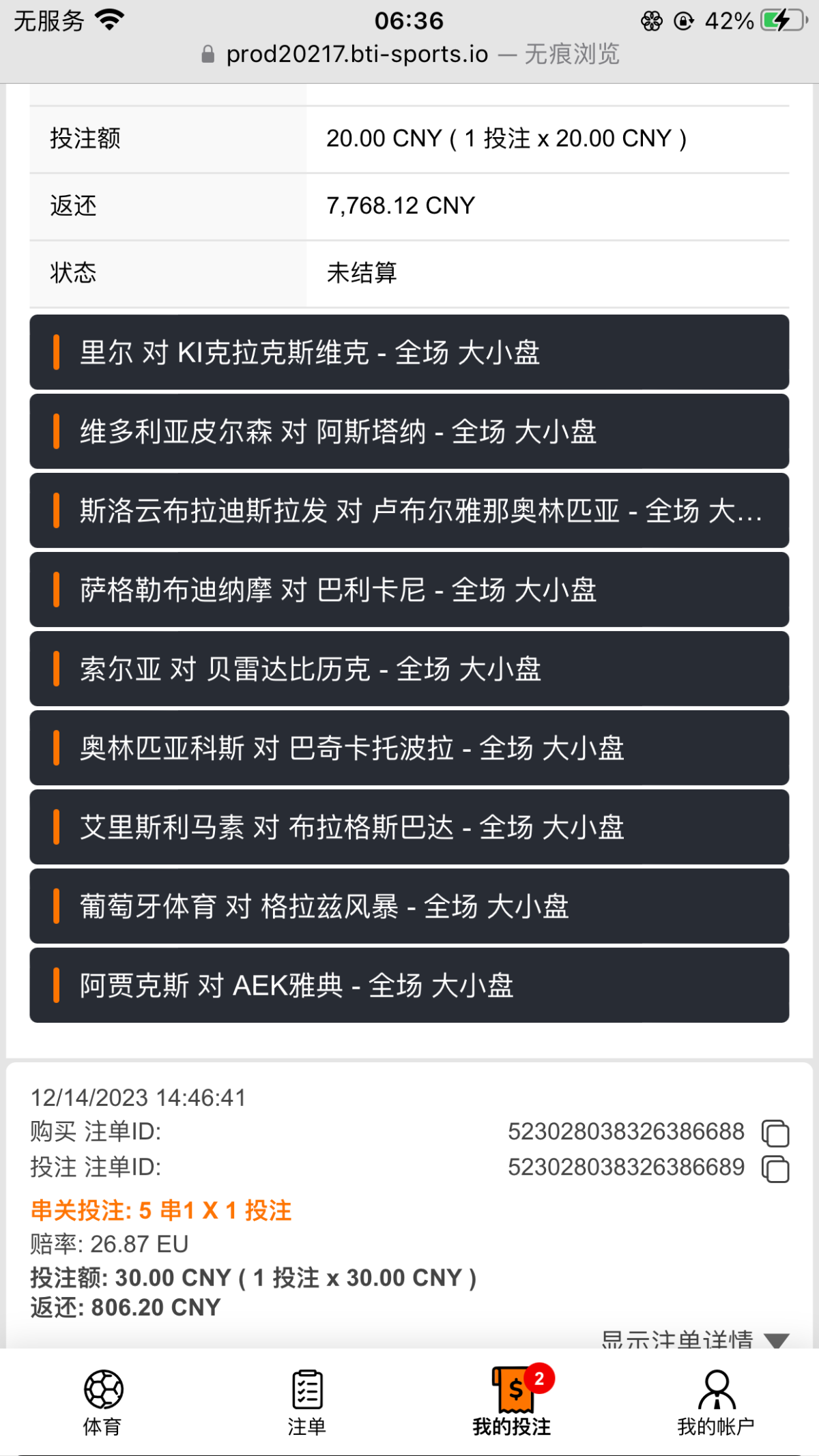 下午冲两百打电子,打到300,果断买了200多的足球,还好中了。本来要买十串一,有一场西汉姆联没选那场是小,选了就死。买得多的没中,就中这个20,30的。