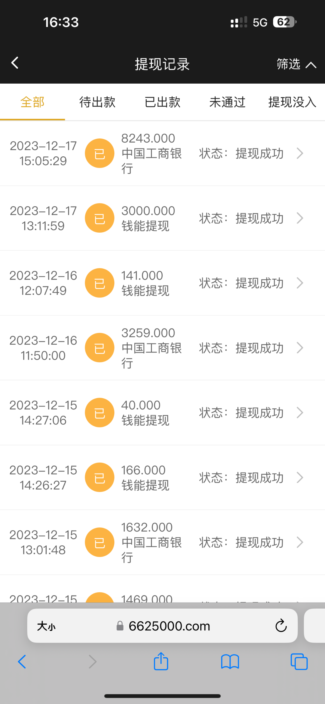 我就最近提了一笔1900的之前还有几千的反正不到1万加起来