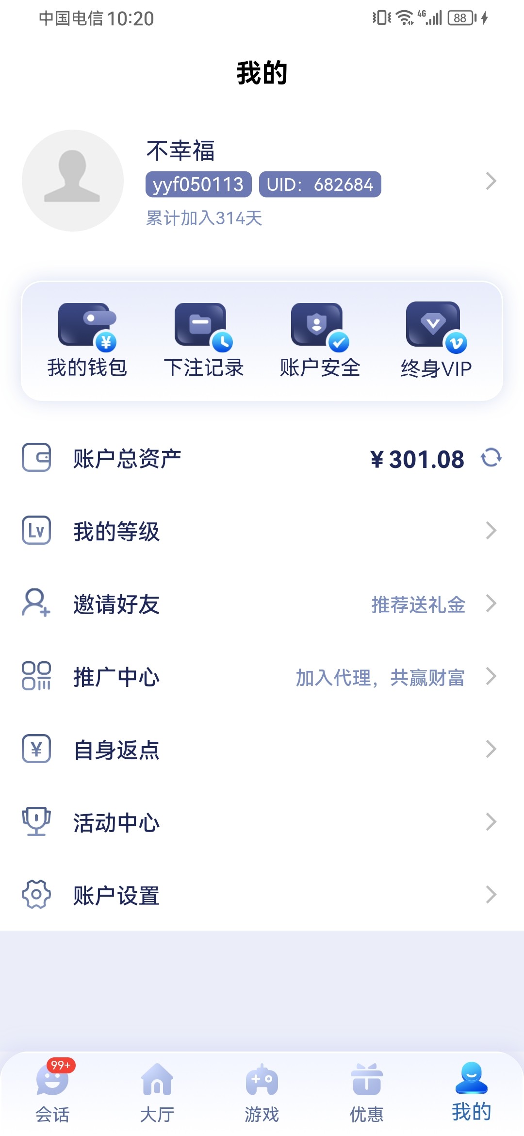 蛋蛋: 去你妈的,还过来问我,注册300多天一看就不是我下级
