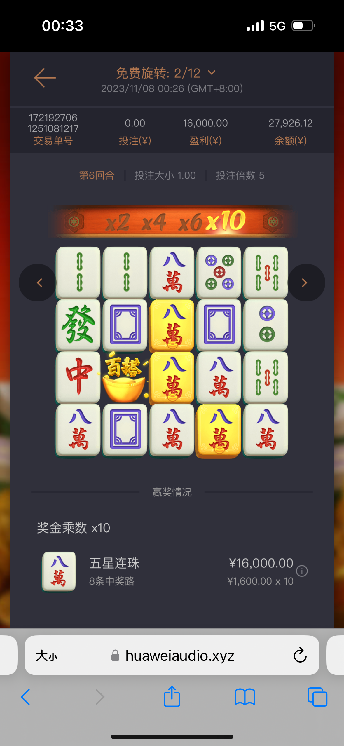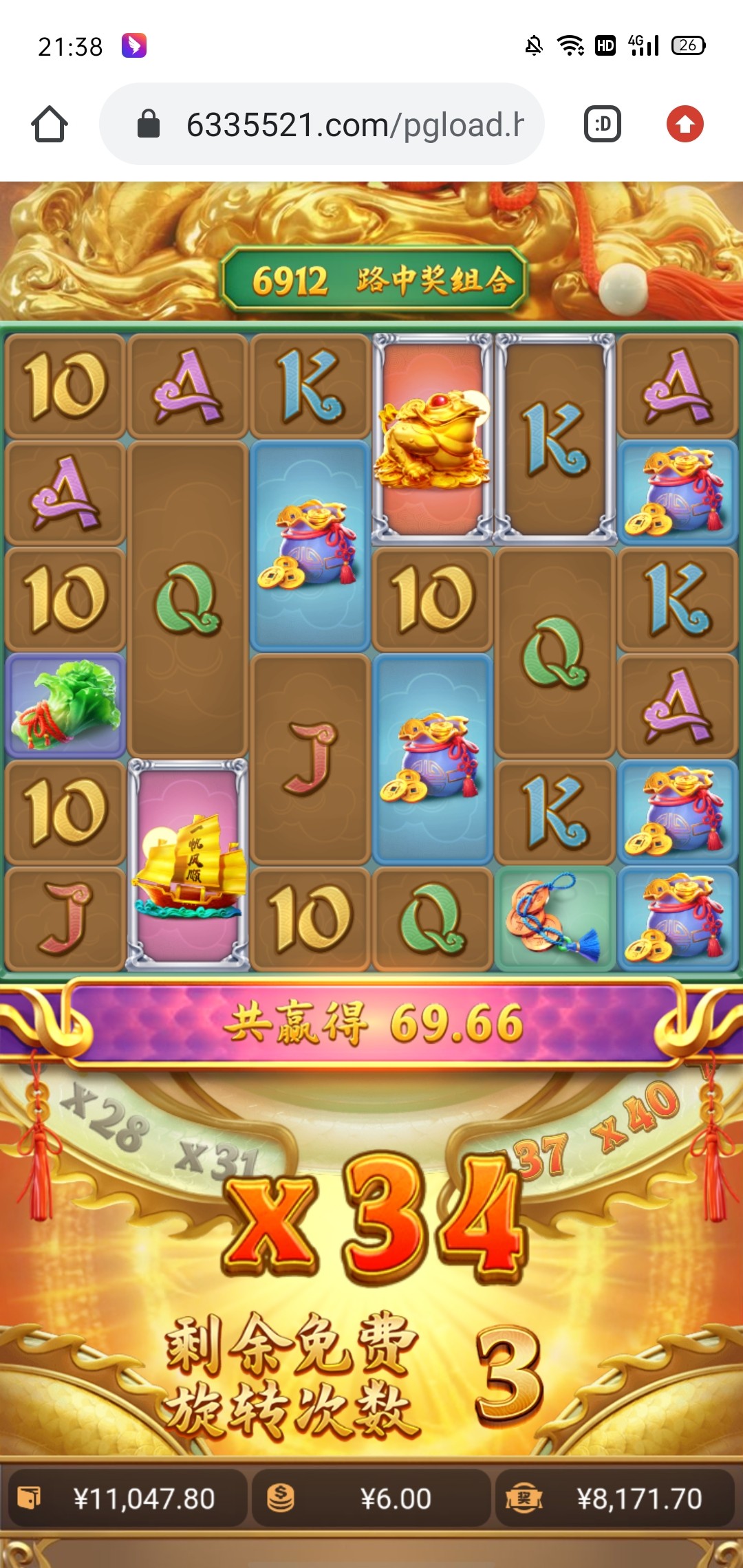 朱老师不饿: 我玩5金狮,1.8一拉,拉输完800多块本金,中途还中了几个几十的,一个100多的,相当于拉了1000多块钱的,不见一次免费。