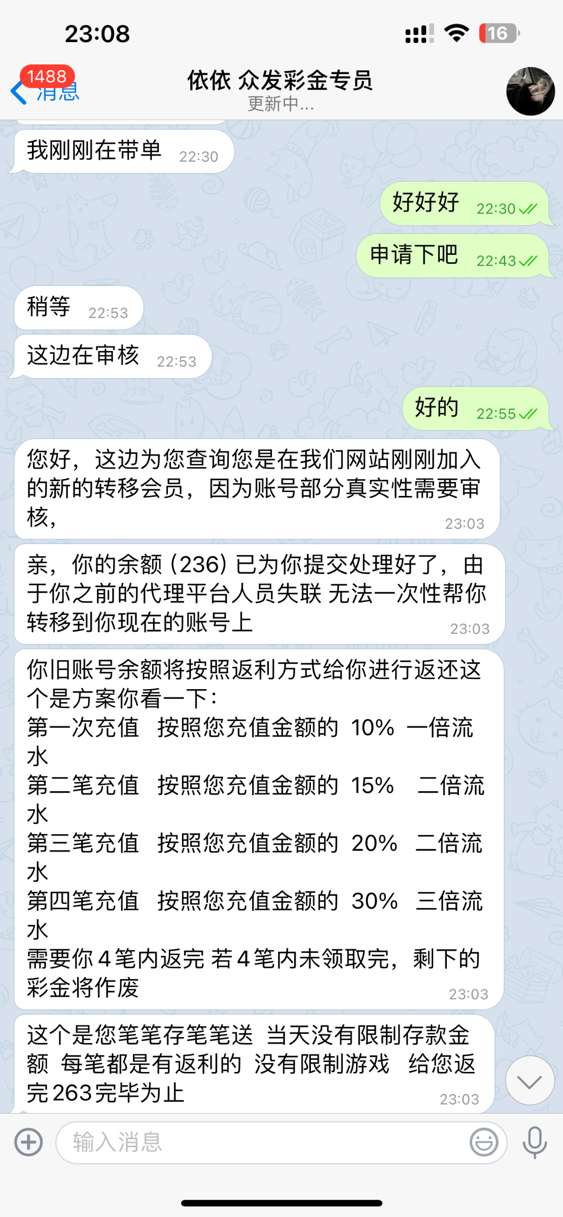 电话回归彩金88,申请的时候又说长时间未充值让充值一百,有老哥知道黑不黑吗
