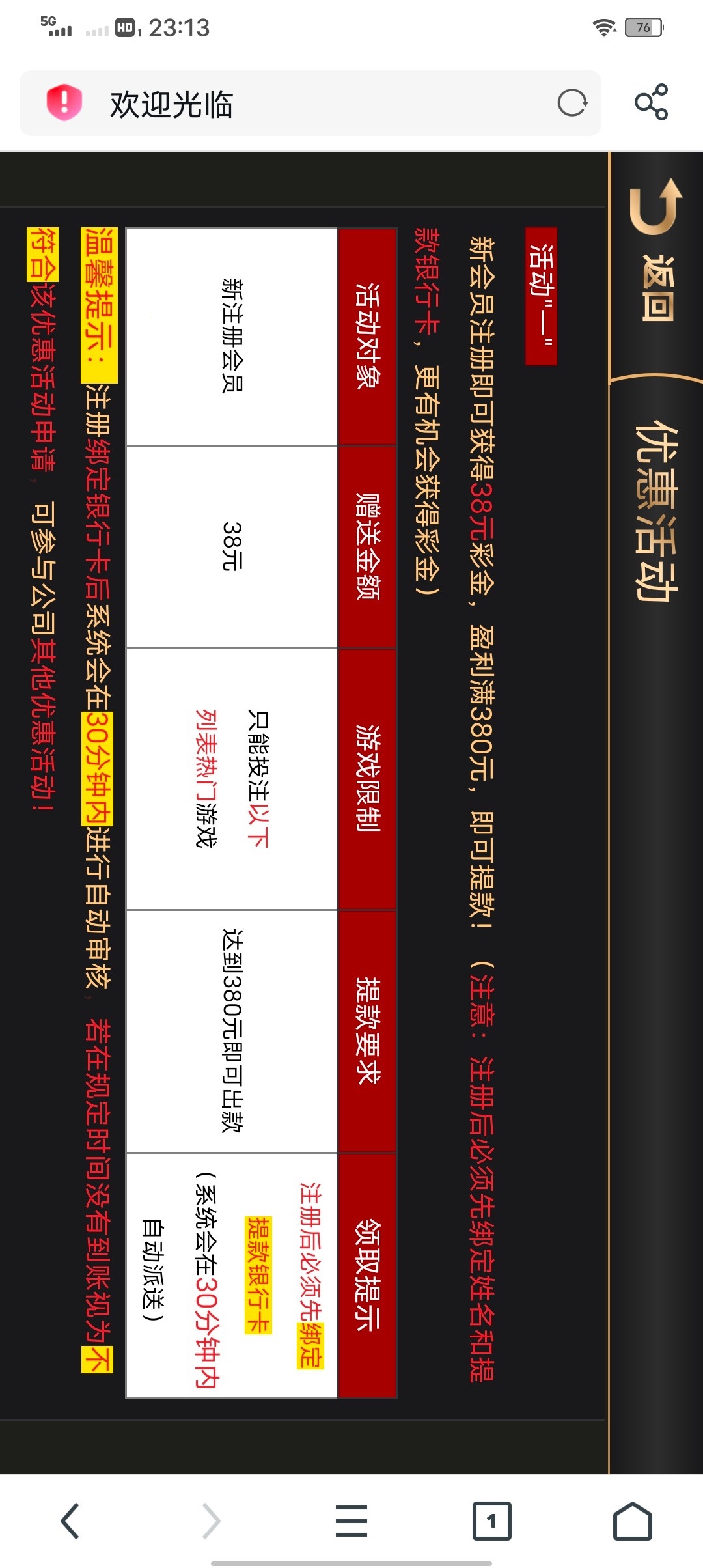 活动:新用户注册完善信息送38 满380提款