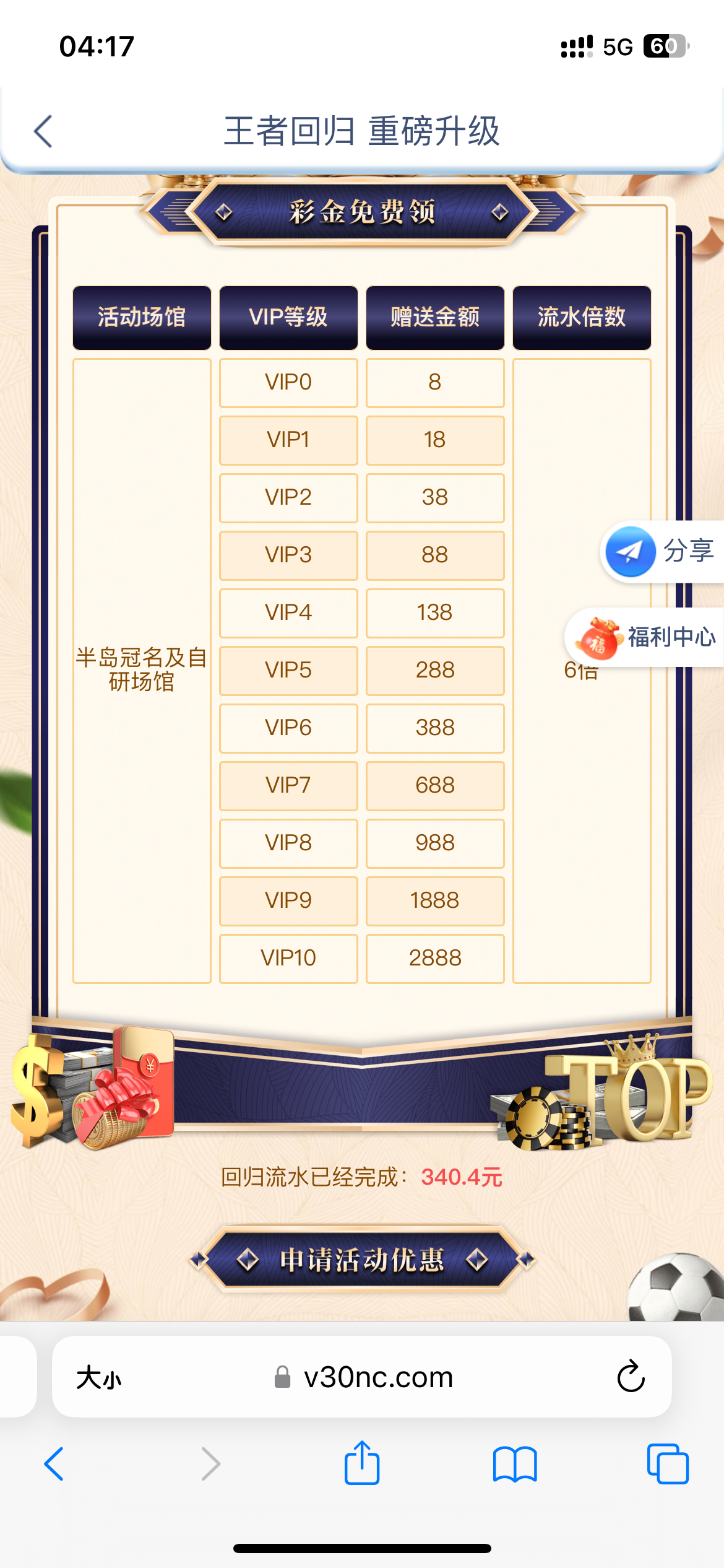 要历史存款2000+或者流水5000+的才能领回归彩金