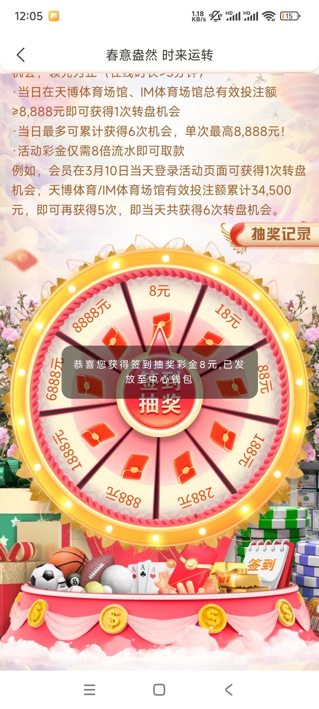 老用户下载APP后台挂5分钟 优惠券抽奖彩金最低8块。