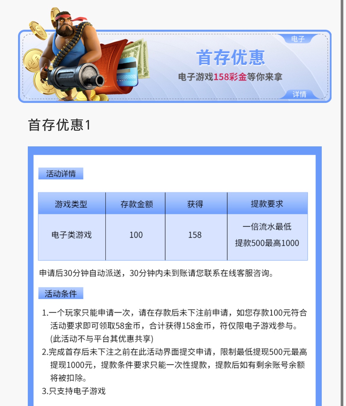 以小博大活动:新用户注册绑定银行卡完善个人信息可申请平台首存优惠活动 100+58 200+188 自助申请基本秒到  详情查看平台活动