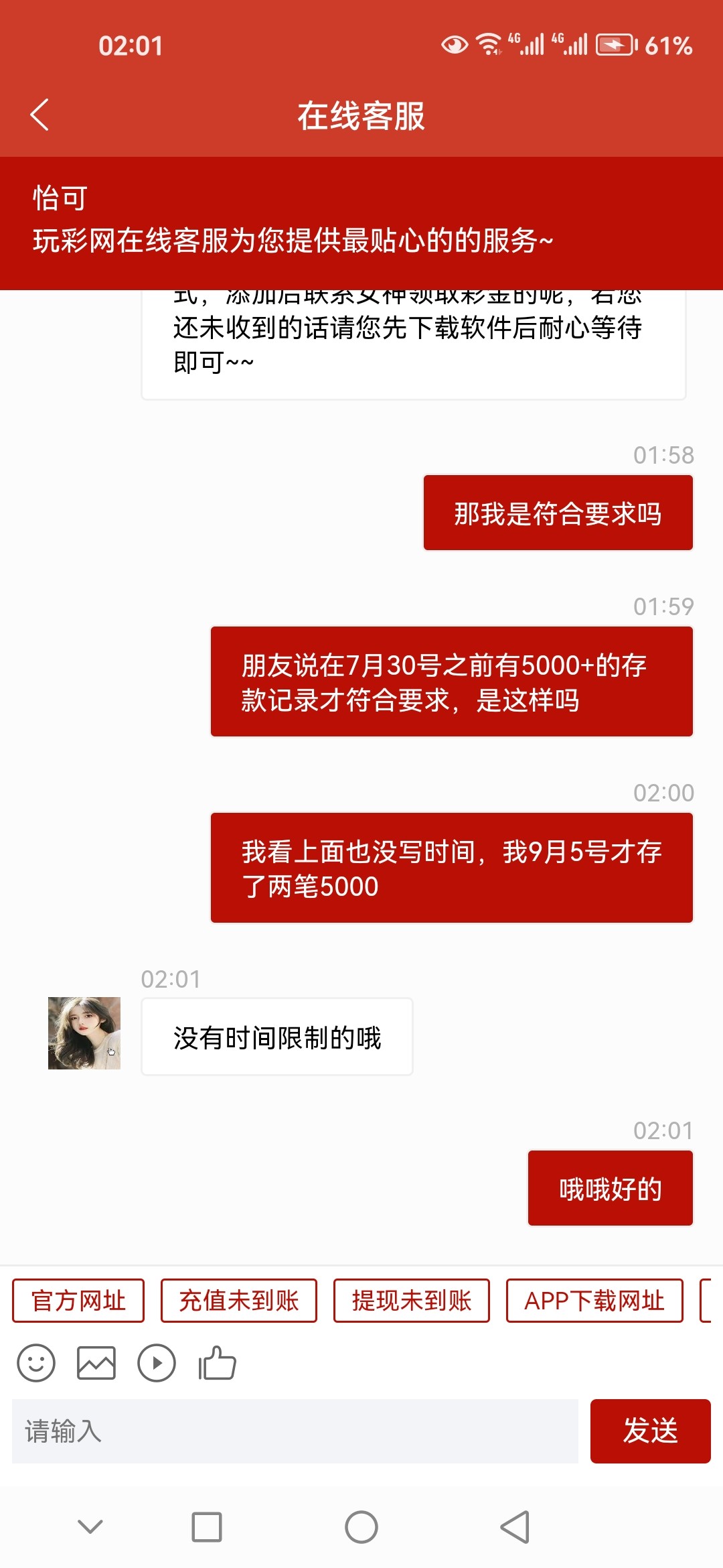前几天存了几笔5000一直没收到站内信,又没有老哥有联系方式或者站内信截图