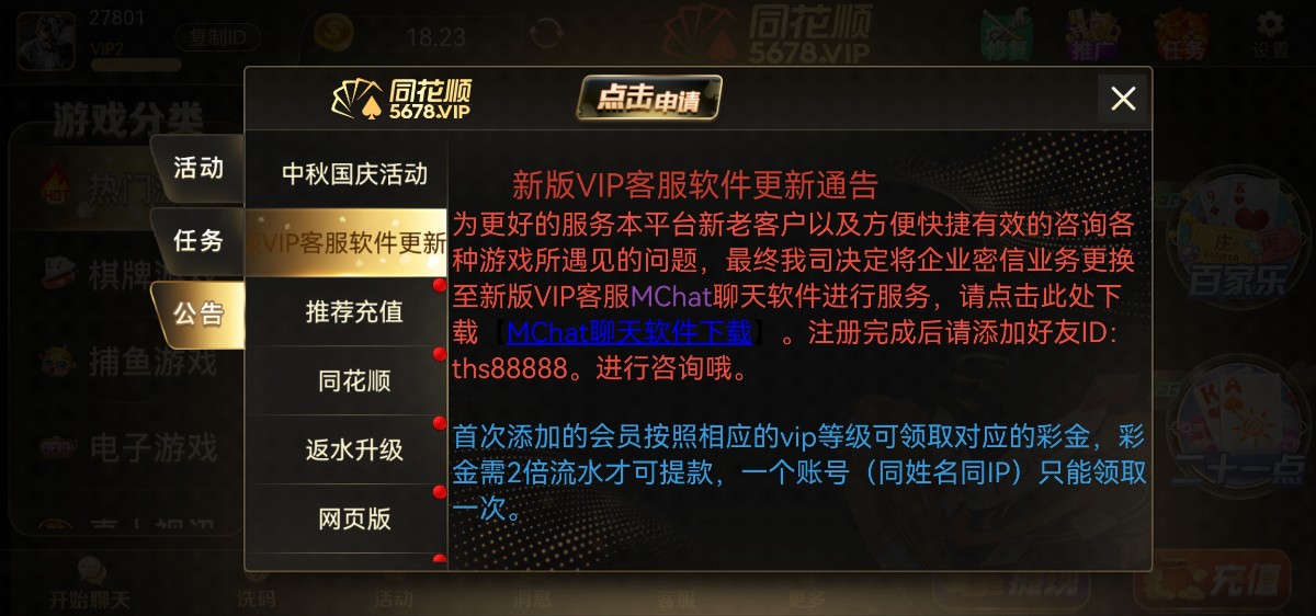 同花顺棋牌原来的316 有v2以上能领18没vip别去