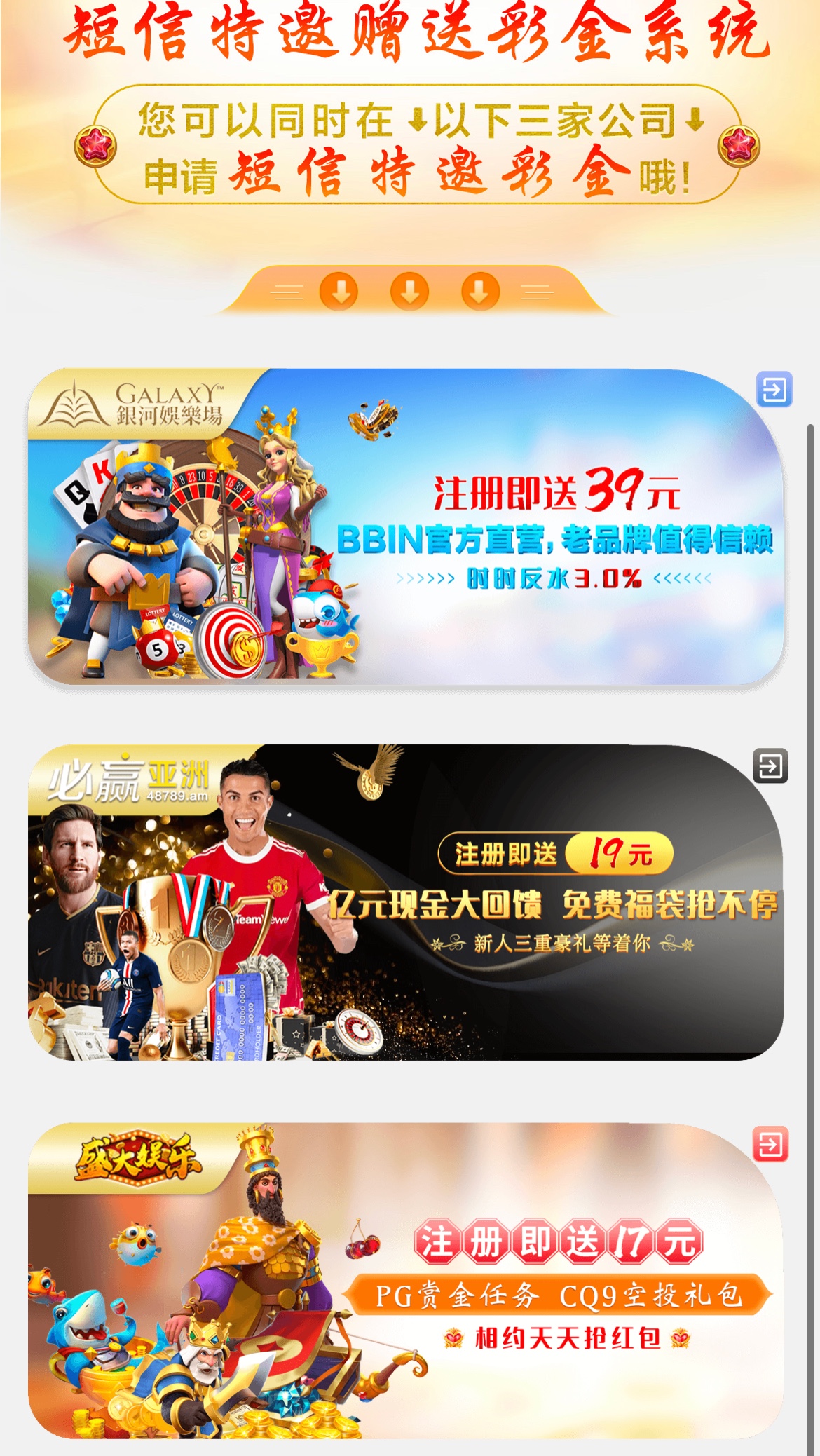 分别是三个网址入口,都是自助秒送27-38元。不用注册账号直接输入手机号+账号(乱填就行)进行碰瓷,成功再注册账号然后验证手机号领取彩金。