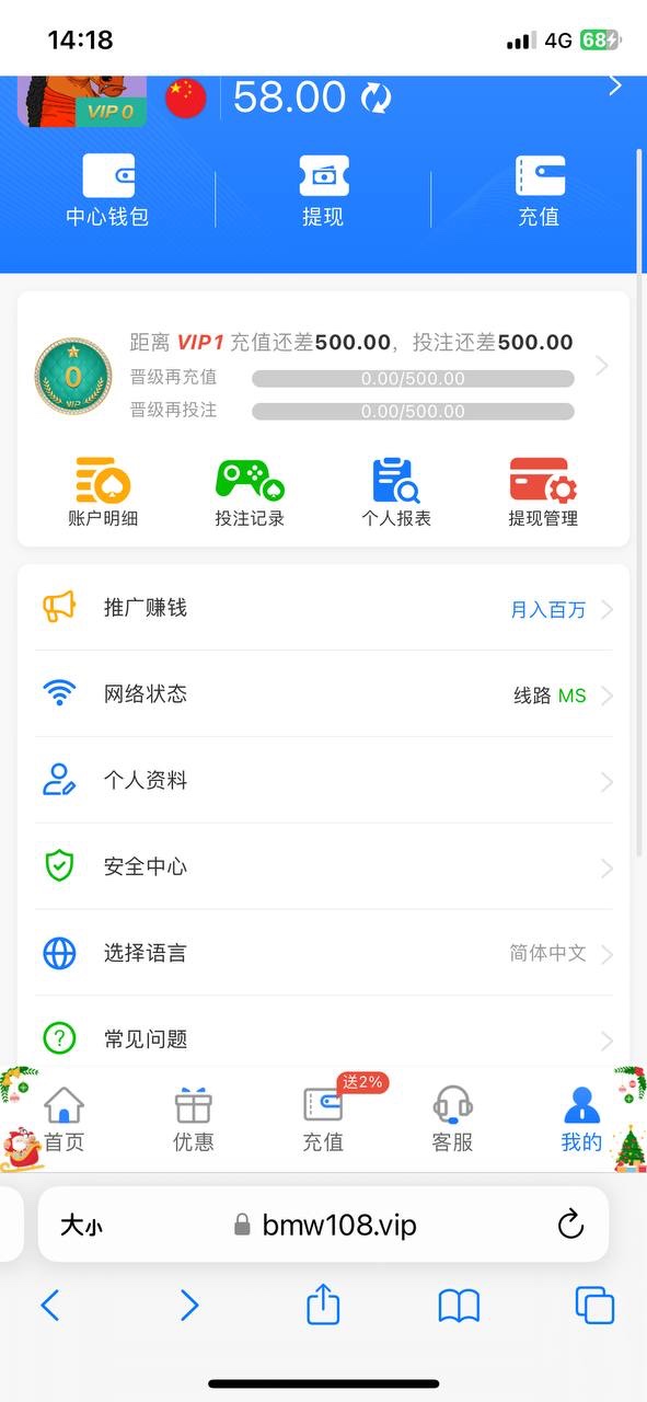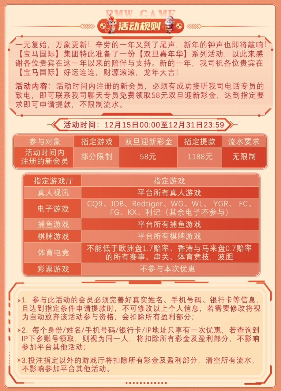 12月15日~12月31日 新用户注册绑卡绑定手机号 等电话回访送58彩金 游戏和提款限制自行查看优惠