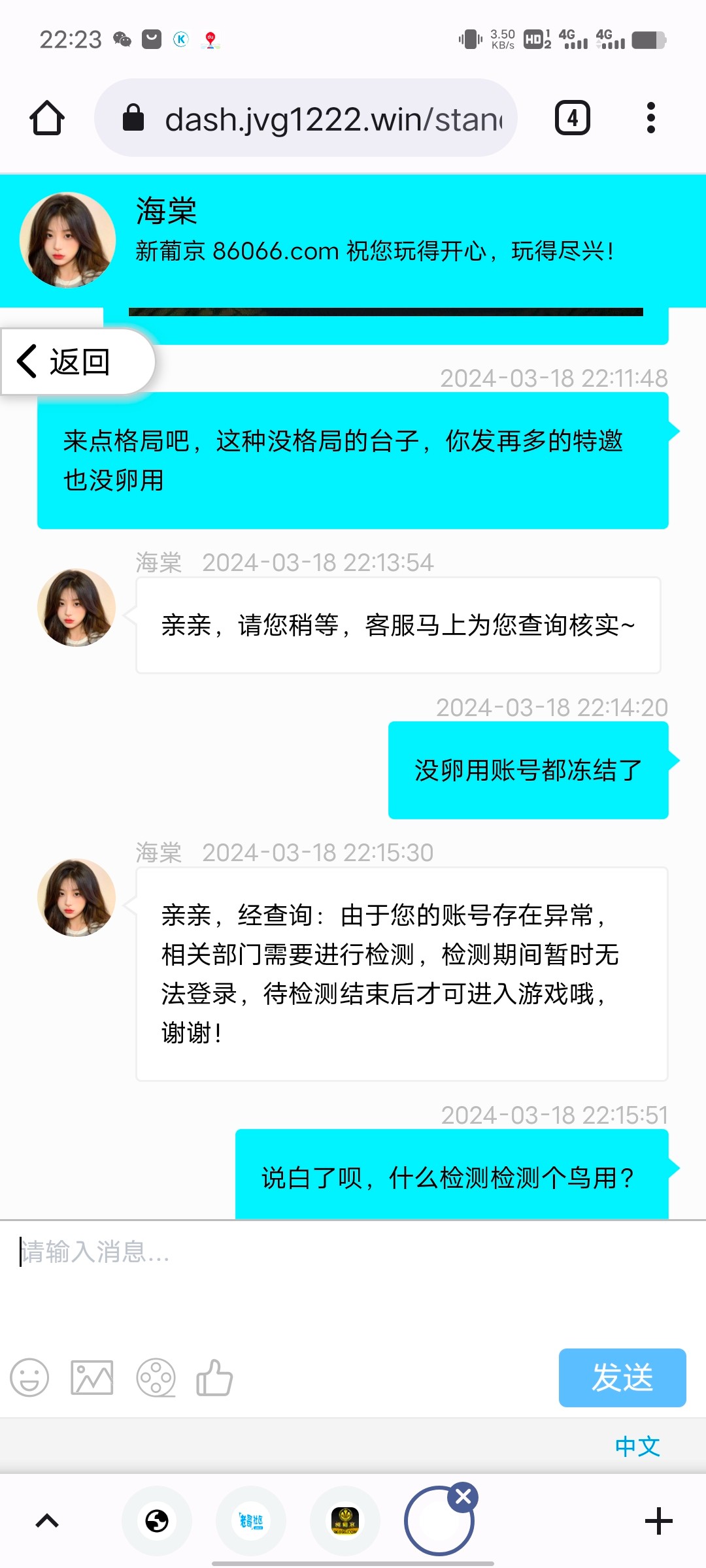 黑台子,大家远离这种台子,你赢了,不给你出款 特邀50打pg电子,干到500不给出直接账号冻结 大家去玩就是傻逼,充值就是脑子有问题