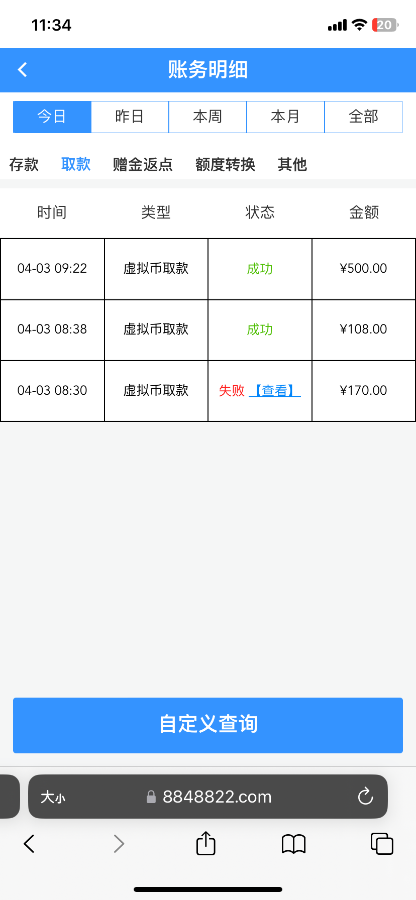 签到8上170,只给提108,充完上去下了500