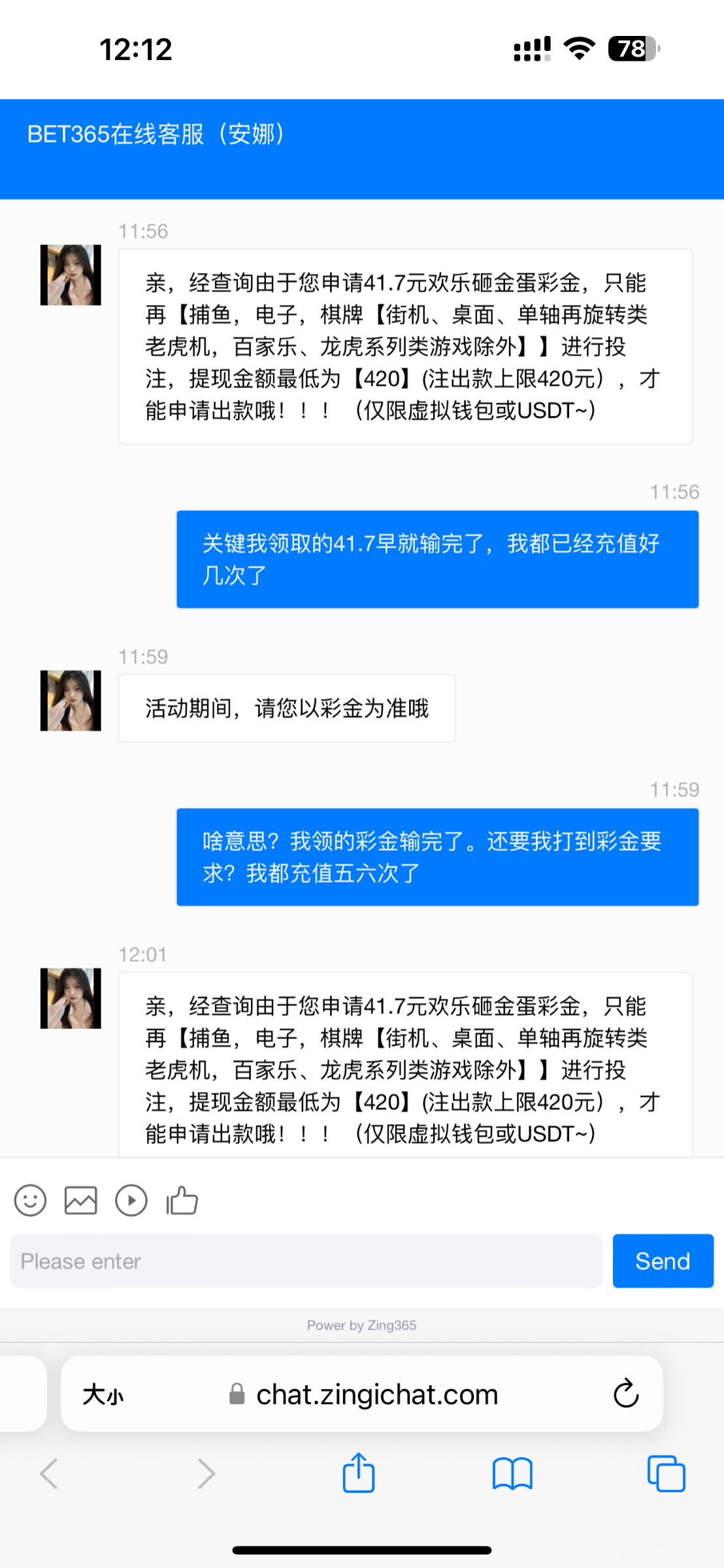 要输完了,都充值几次了。还要我打到41.7彩金的要求才能提