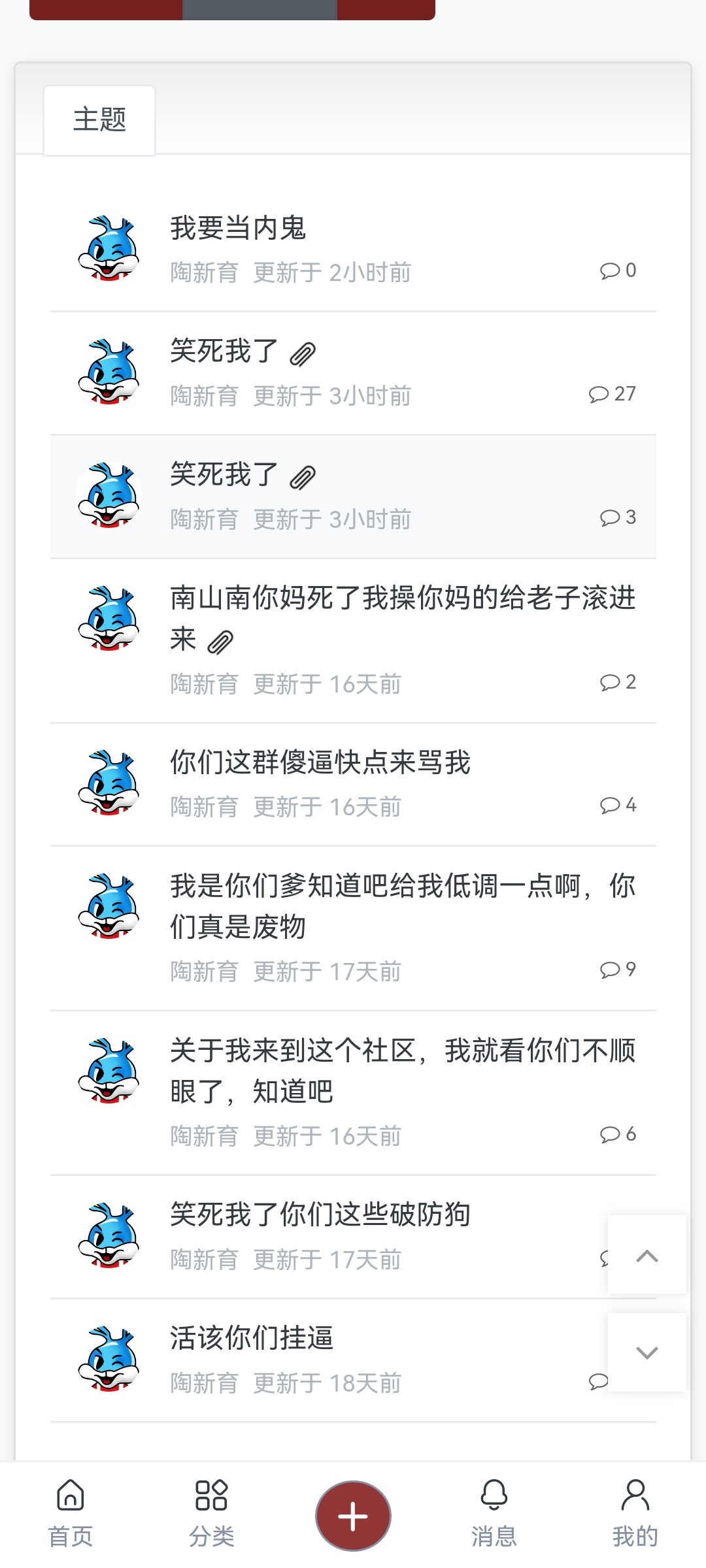 傻逼兔子,你妈死了,赶紧封号吧,天天的叫你妈