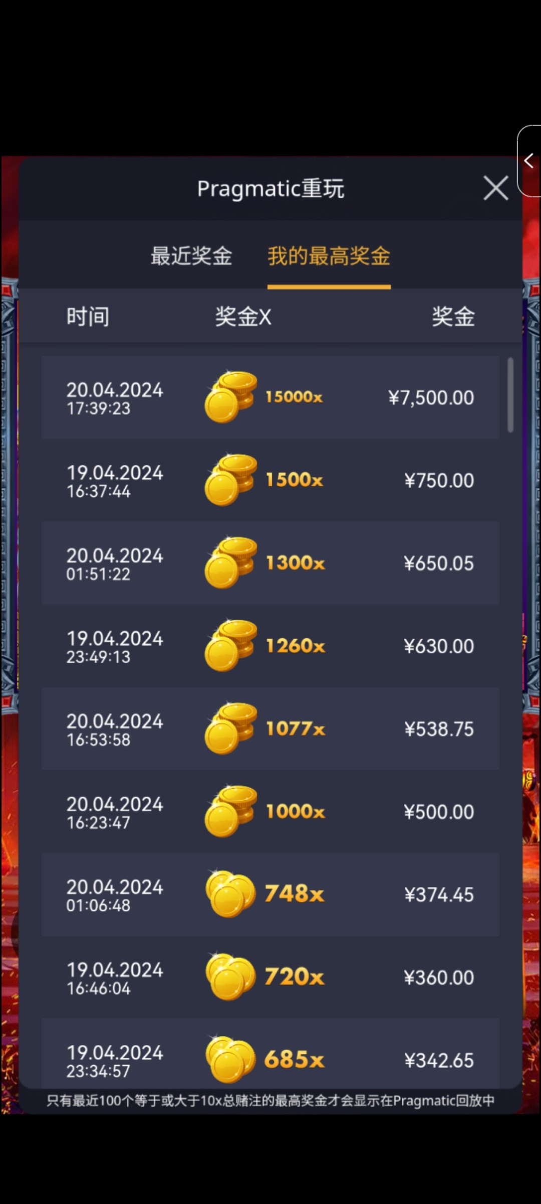 忘了那个哥们发的AB钱包了,充了一百加上注册给的彩金,两百多玩了玩PP,哈迪斯就开始一直转,几百倍到上千倍一直来,直到今天给了15000倍,PP真是YYDS
