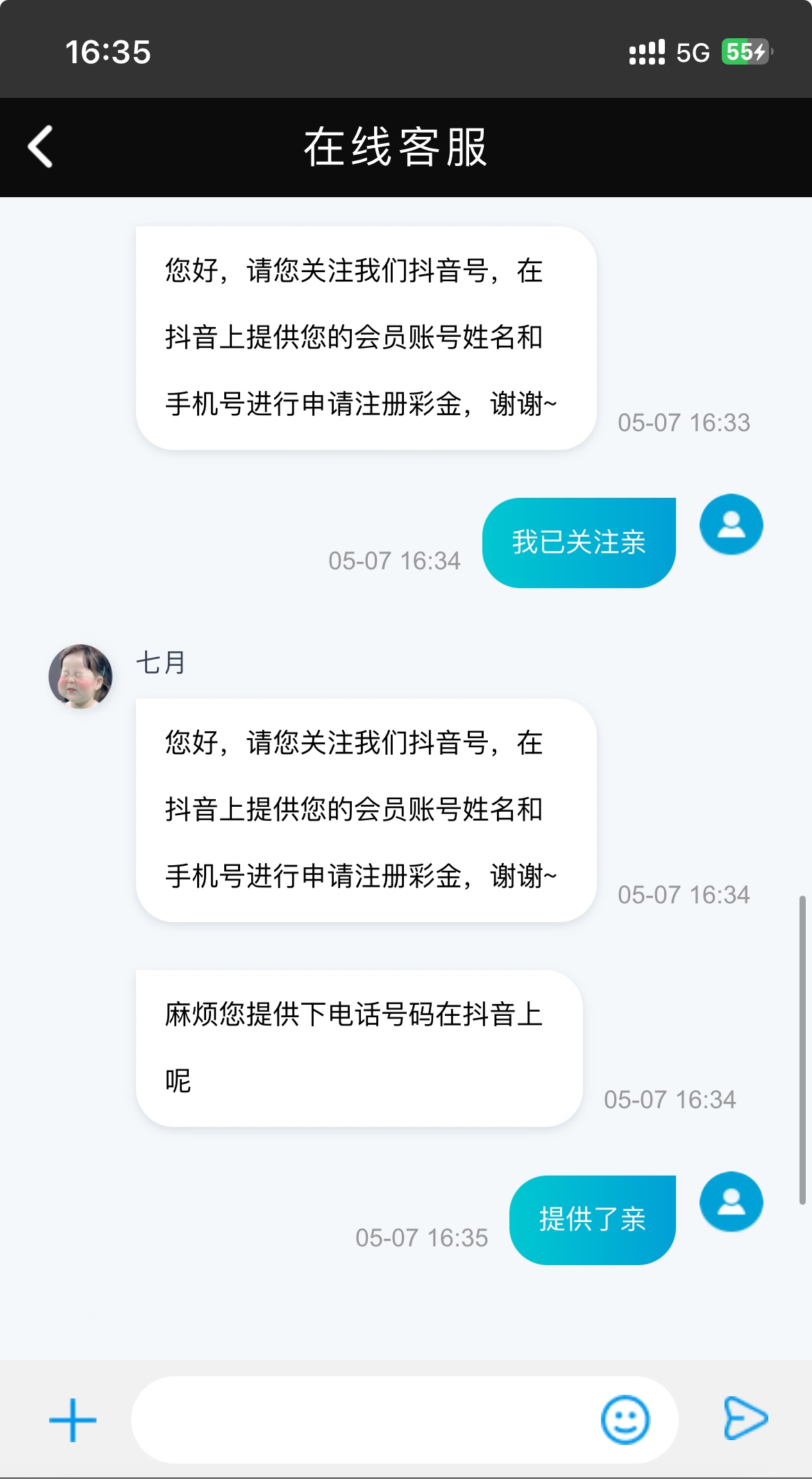 注册找客服说特邀彩金然后客服会给你某音账号然后去搜索关注等回关发送账号姓名手机号领取注册彩金