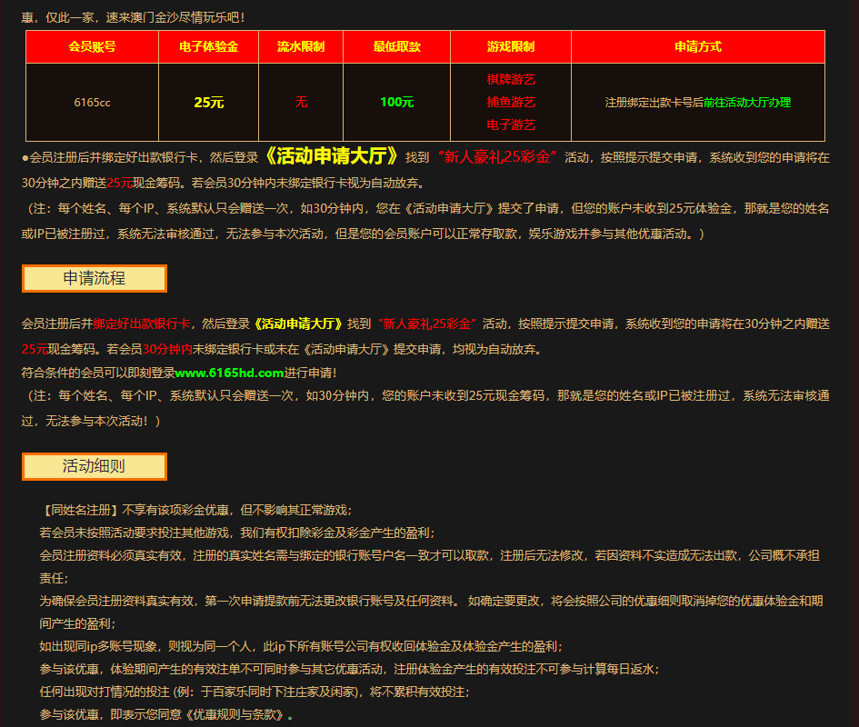 只看规则,不用申请新人彩金吗
