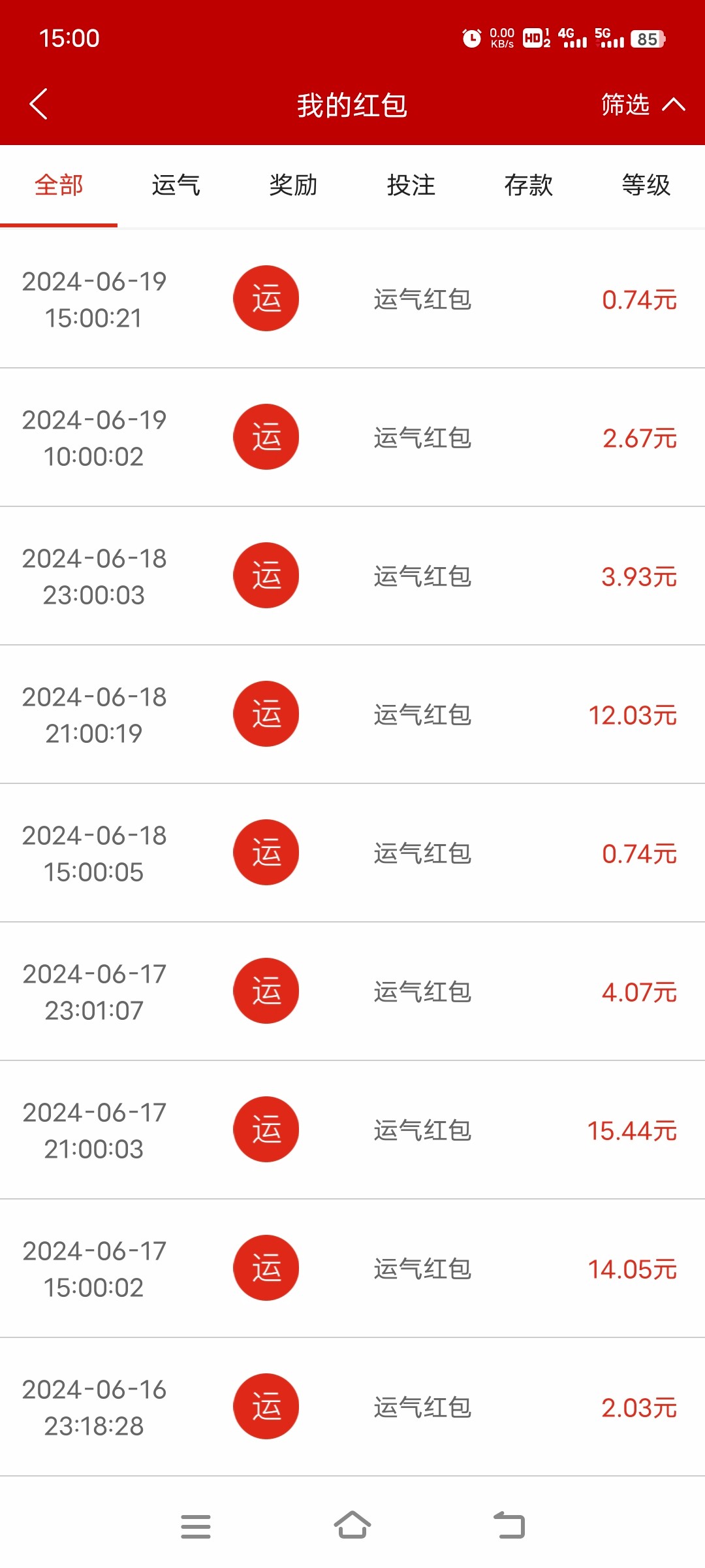 和我一样,v4每天充100到50,红包个位数