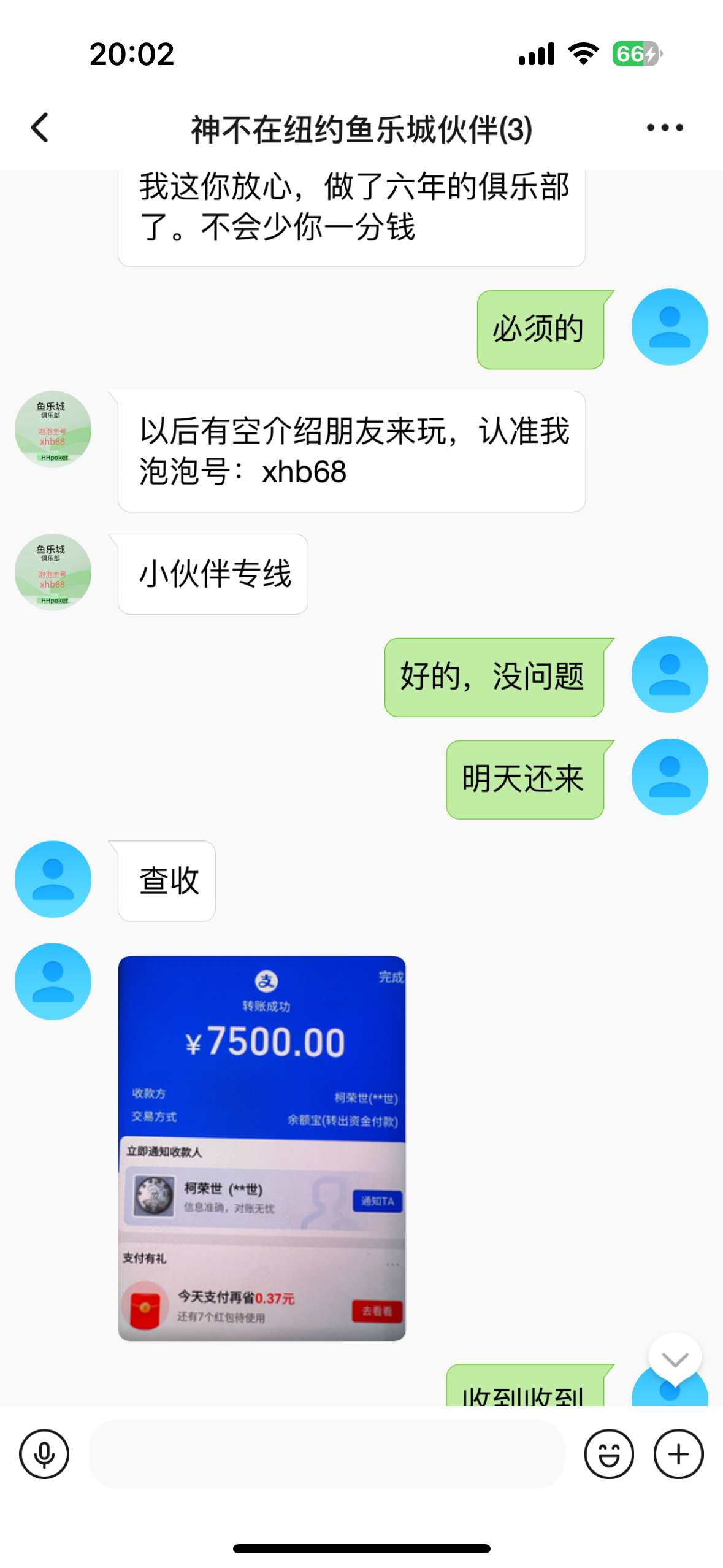 电话邀请的台子说放水我就抱着试试去台子里看了看,这两天输了不少就剩3000块钱了果断充了2600进去玩德州牛仔,真特么好中,比司马百家哭好多了,下分7500已到账,洗个脚去喽