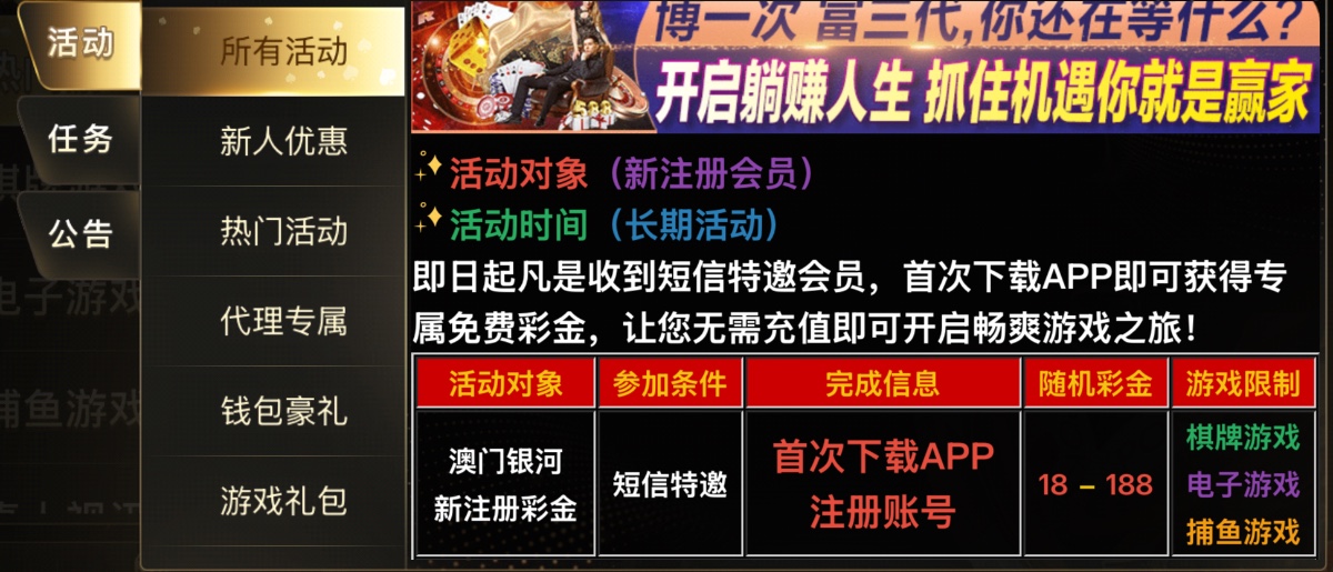 下载注册去活动领取下载彩金包送的