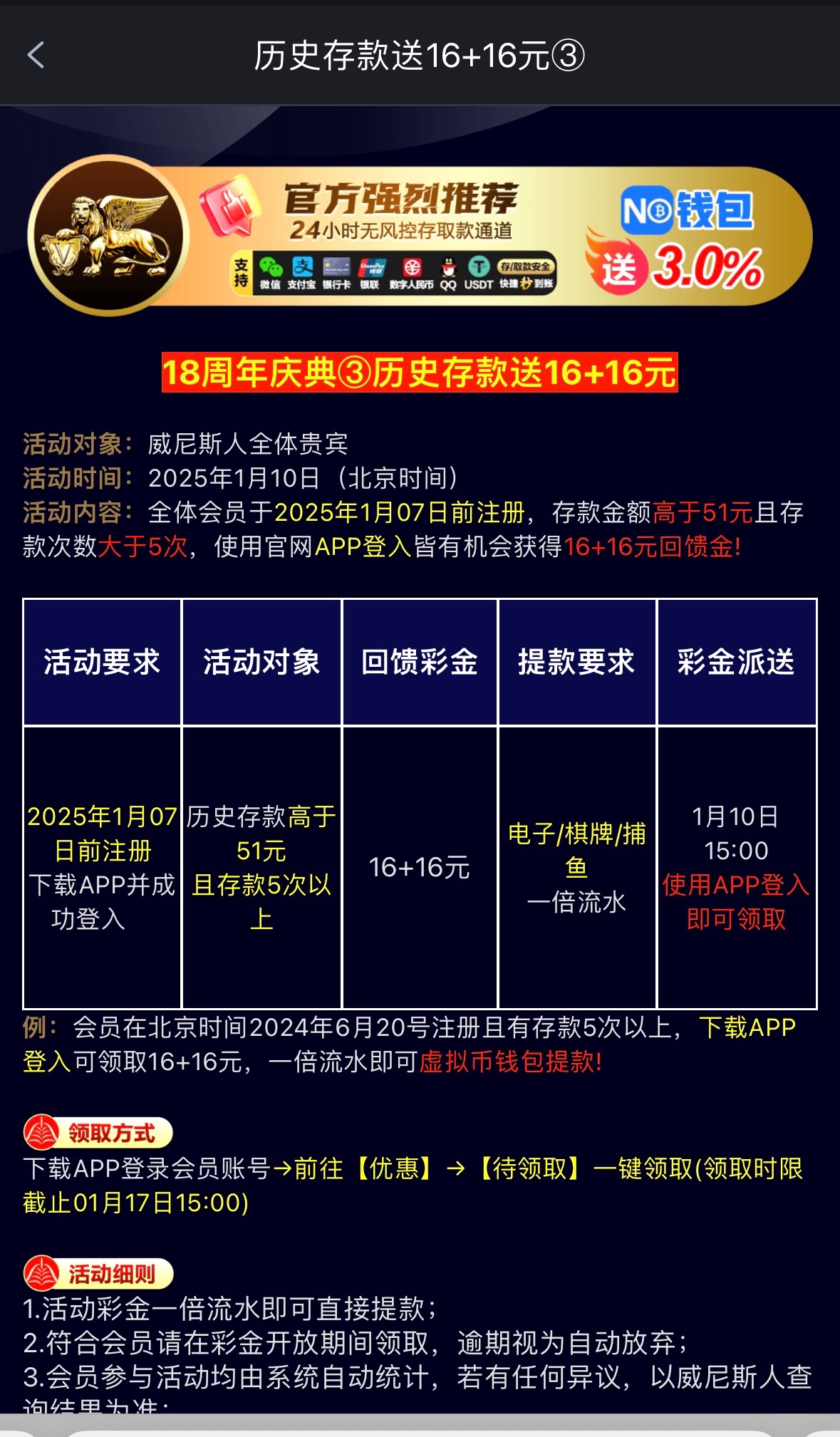 威尼斯回馈送16+16