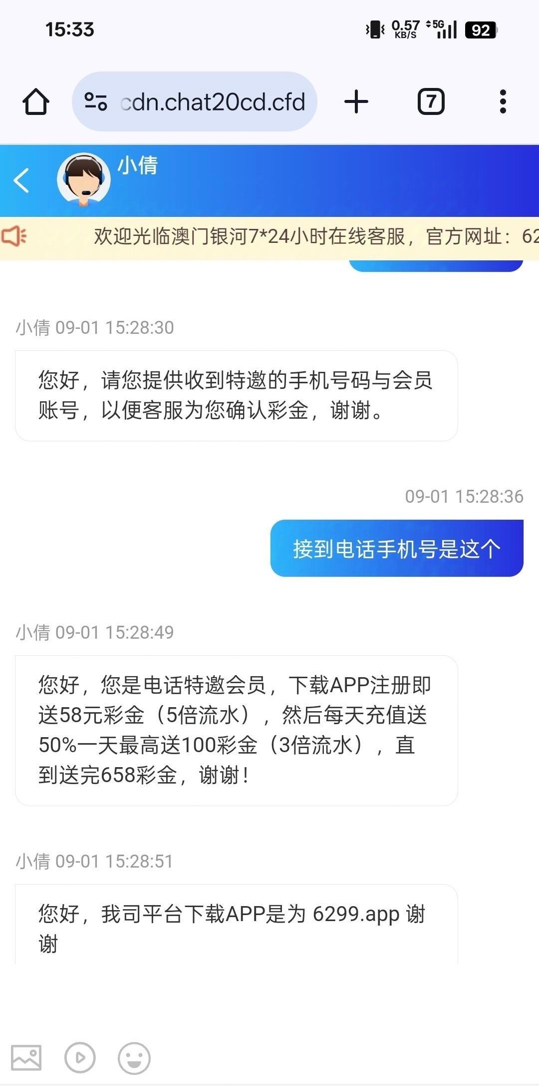 会叫你下载app登录,送58,我是碰瓷了