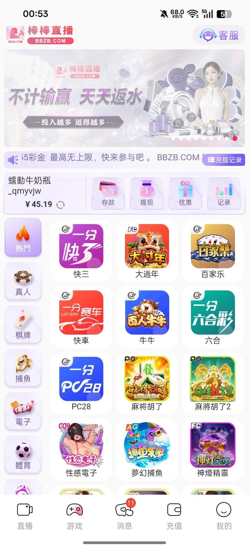 【棒棒直播】回访彩金