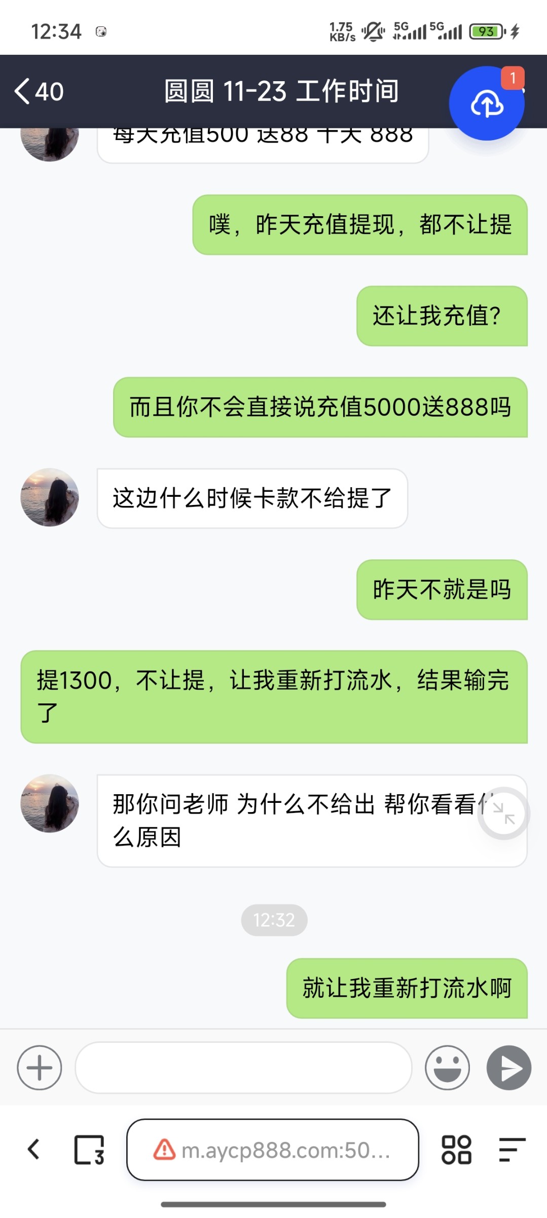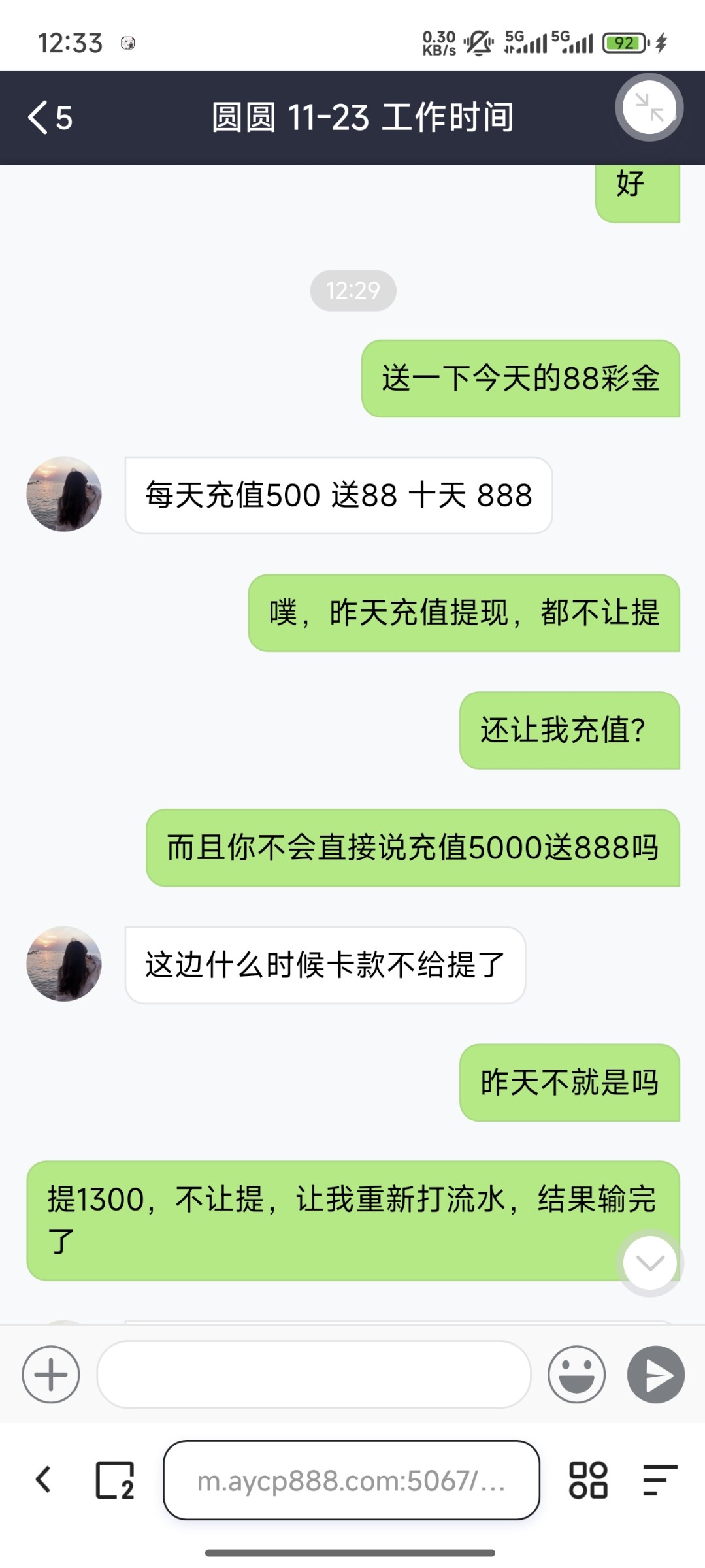 我看分享网发的白菜说送彩金,我就去了,后面只能充值送了,我看他提现200到账了,就充值了,结果提现1300说我买了大,又买了单违规,让我安装1-3-9打流水,后面就输完了,然后今天彩金也不送了