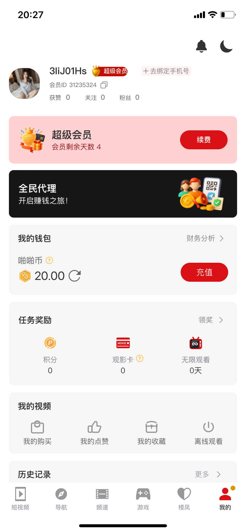 啥都不绑定,狗庄会给你出?人家当欢乐豆给你发的。你等一下卸载重装,每一次都有20。