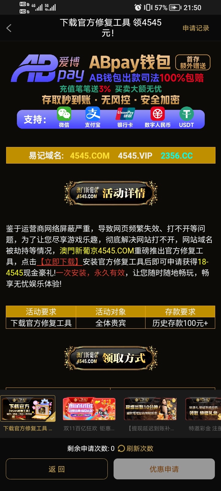 历史存款过100的 下载修复App可以领取彩金