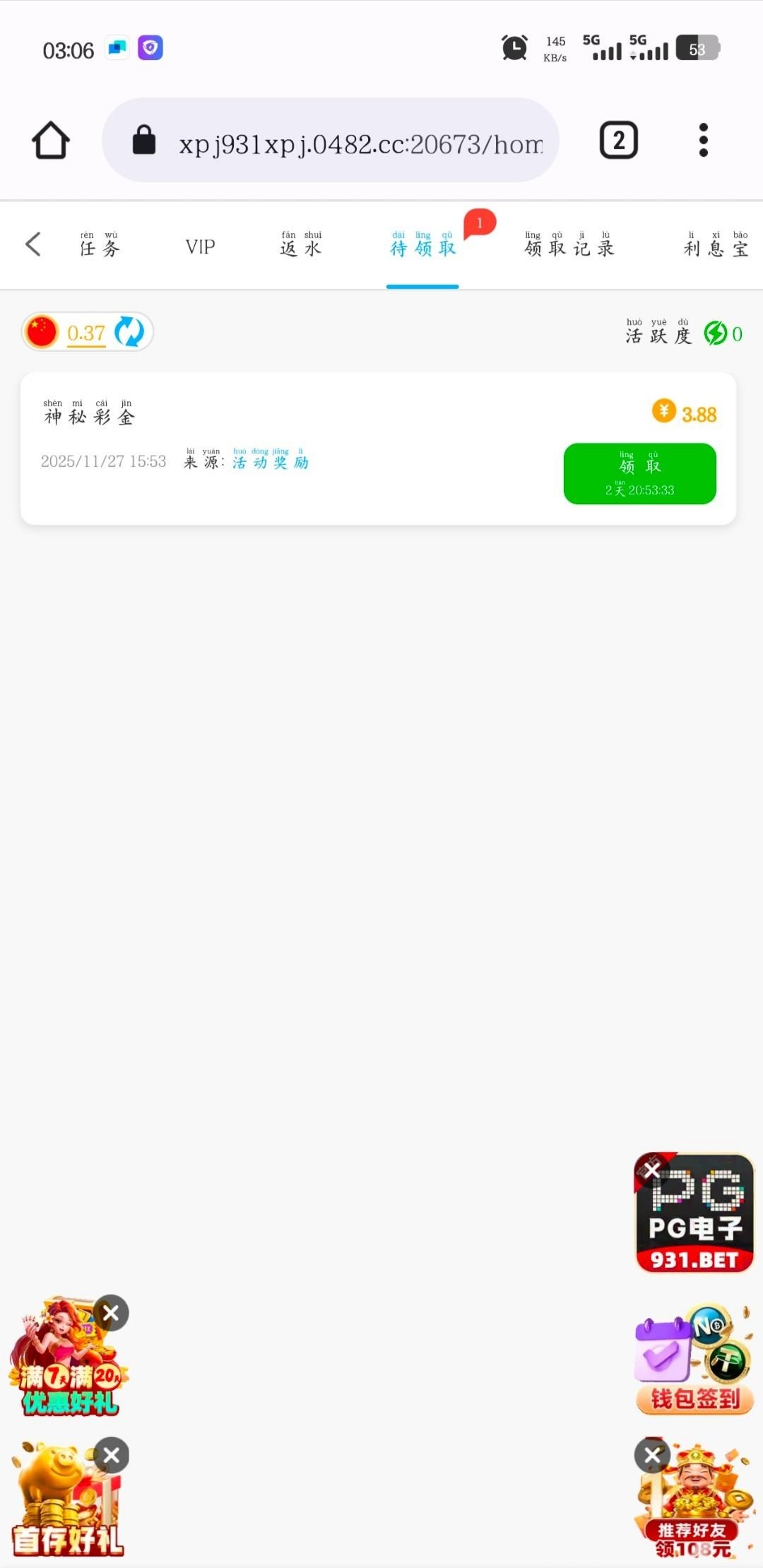 【葡京931】——神秘彩金