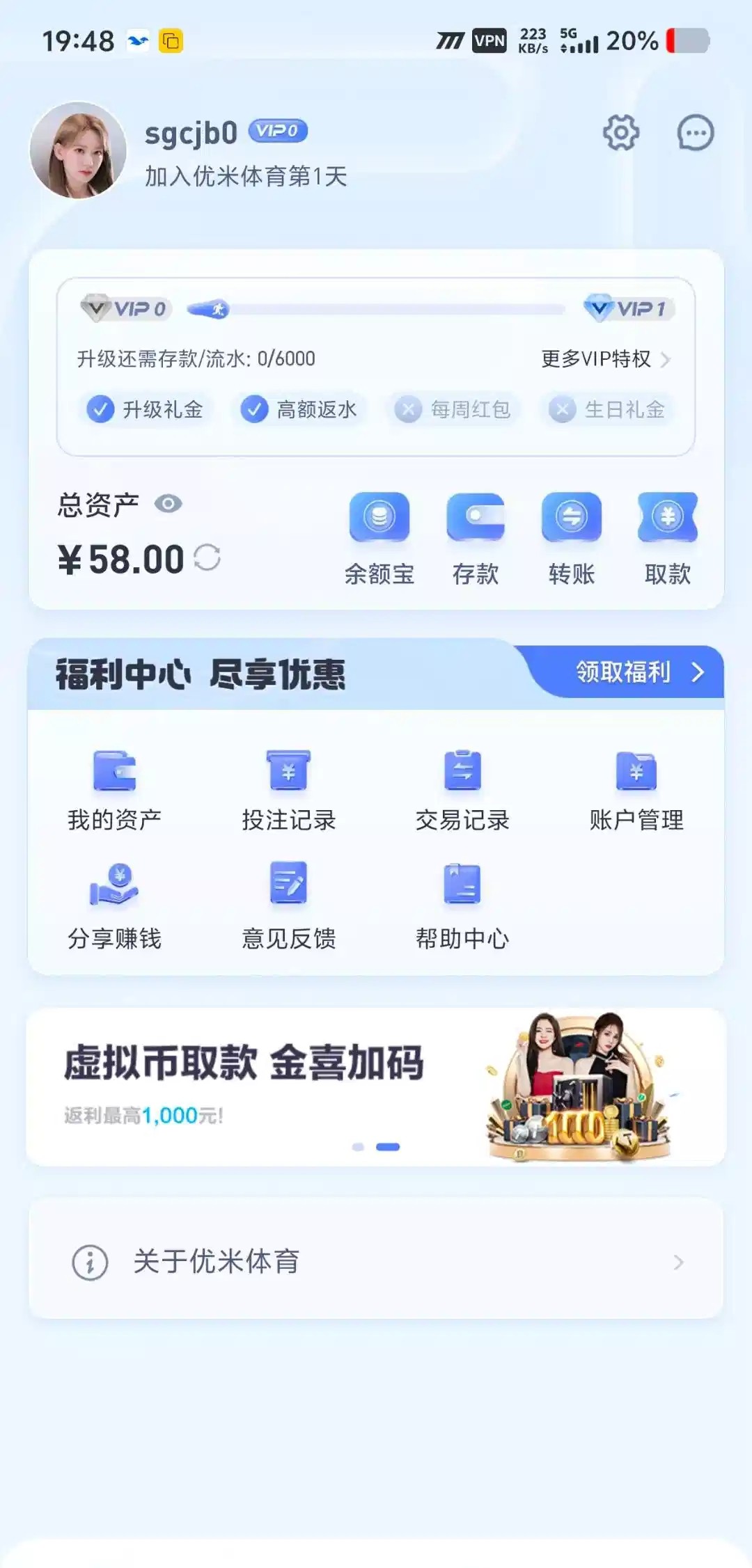 本站声明 1、本帖标题:优米体育送58