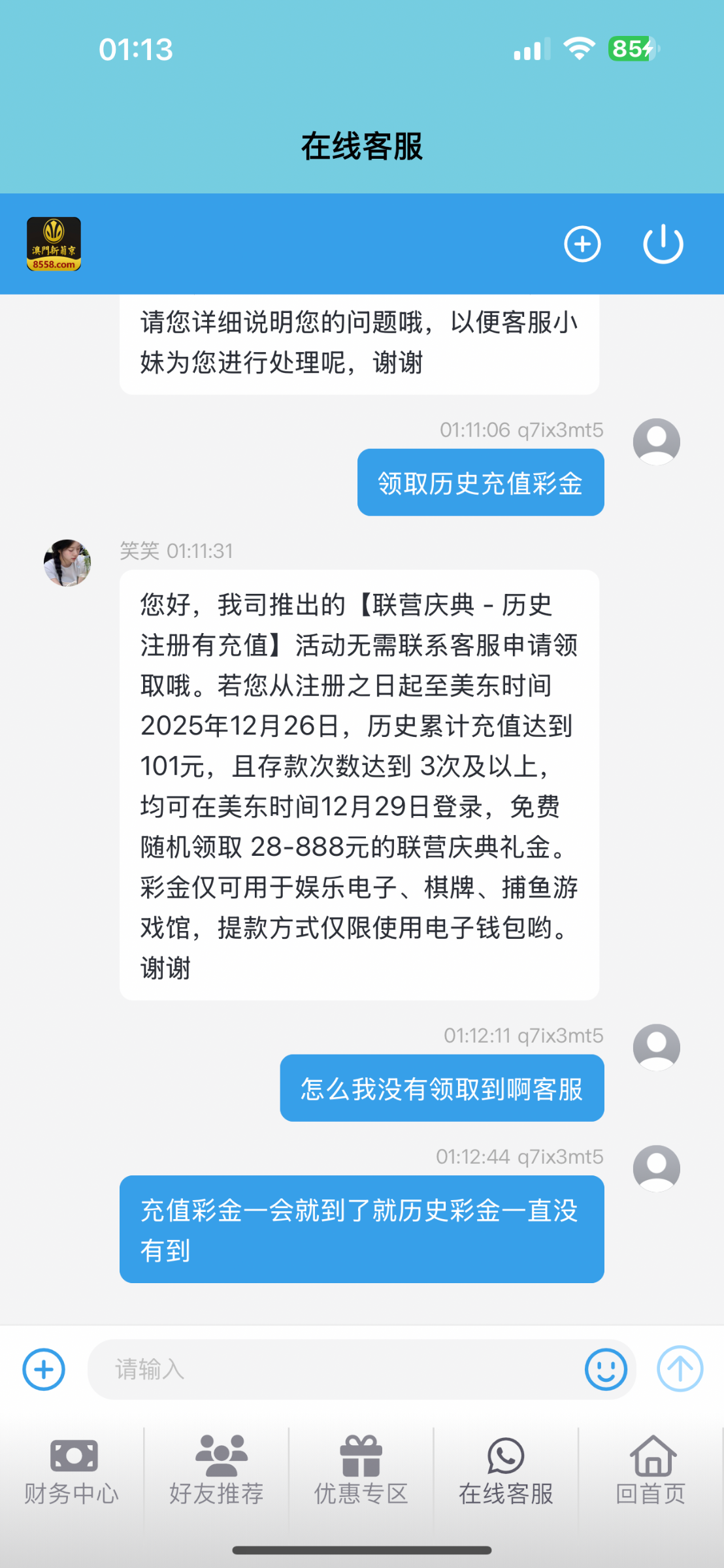 注册1年零100多天,充值了也不送