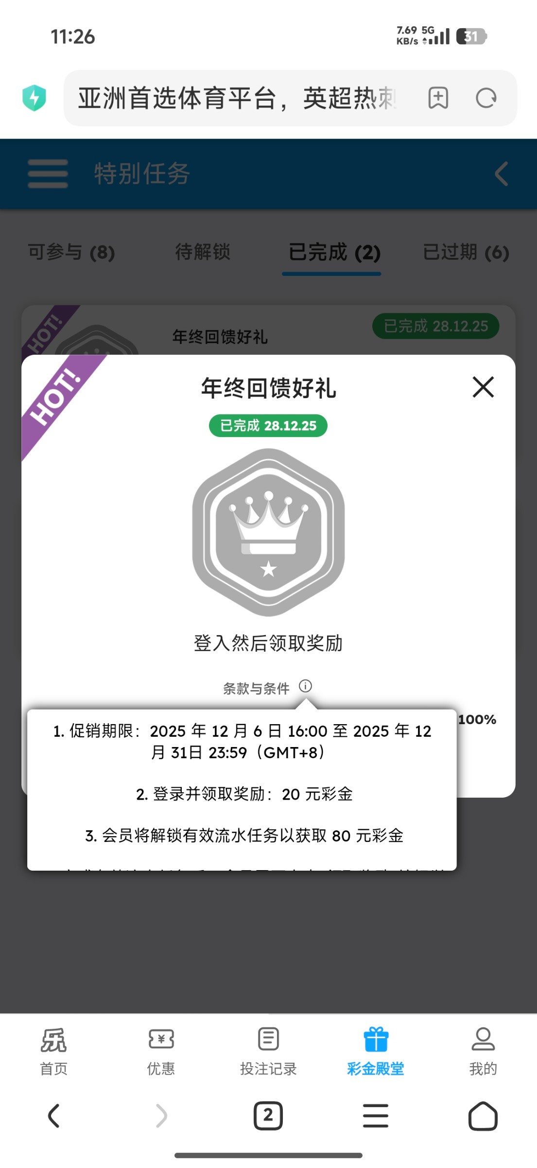 乐天堂可以领取20年终彩金