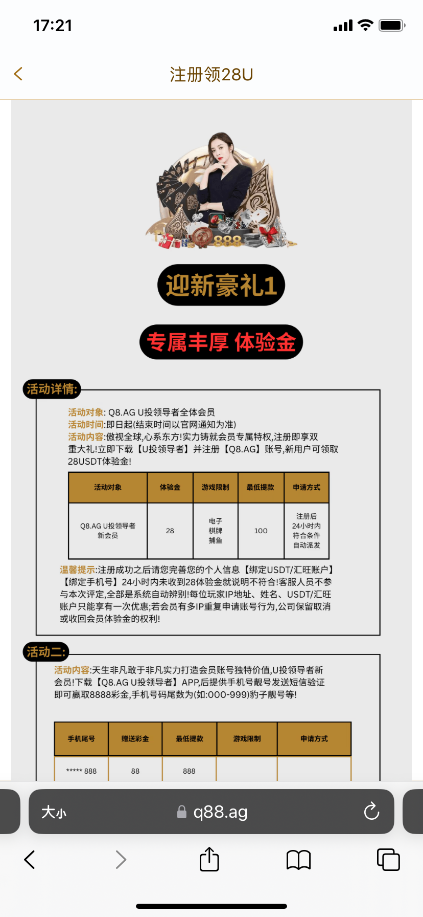 【免费彩金】Q8AG✅【送28u】