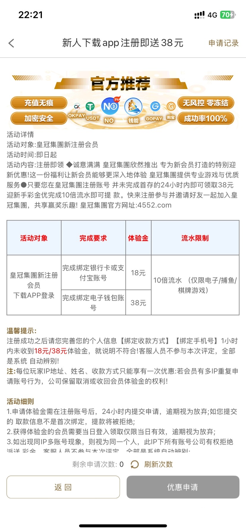 先下载APP再注册,绑定好提款信息,提交申请过了几分钟就送了