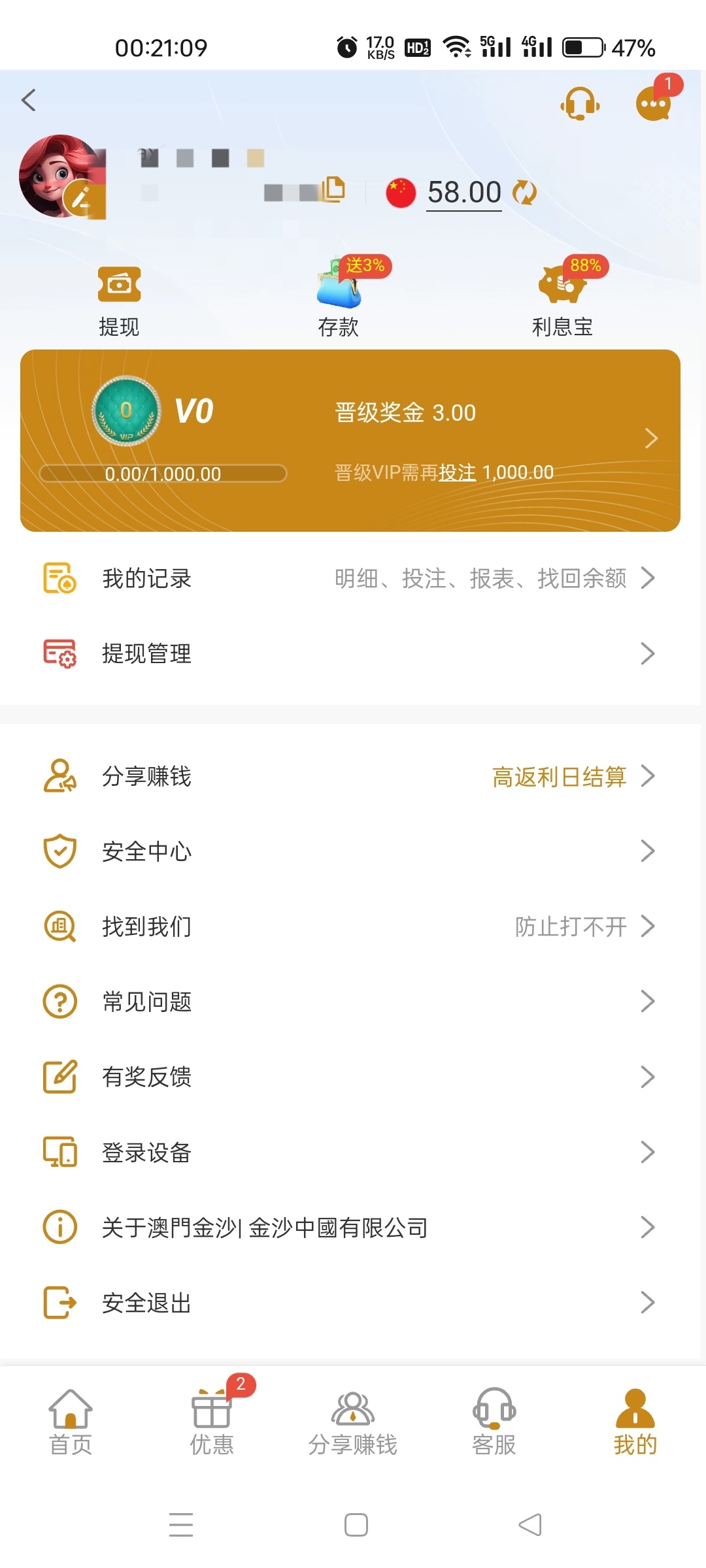 澳博Aobo合并到澳门金沙有号的老哥们找客服领合并彩金,我领了58一倍水