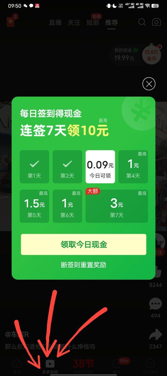 进去签到刷视频,一个星期最高可以弄10元