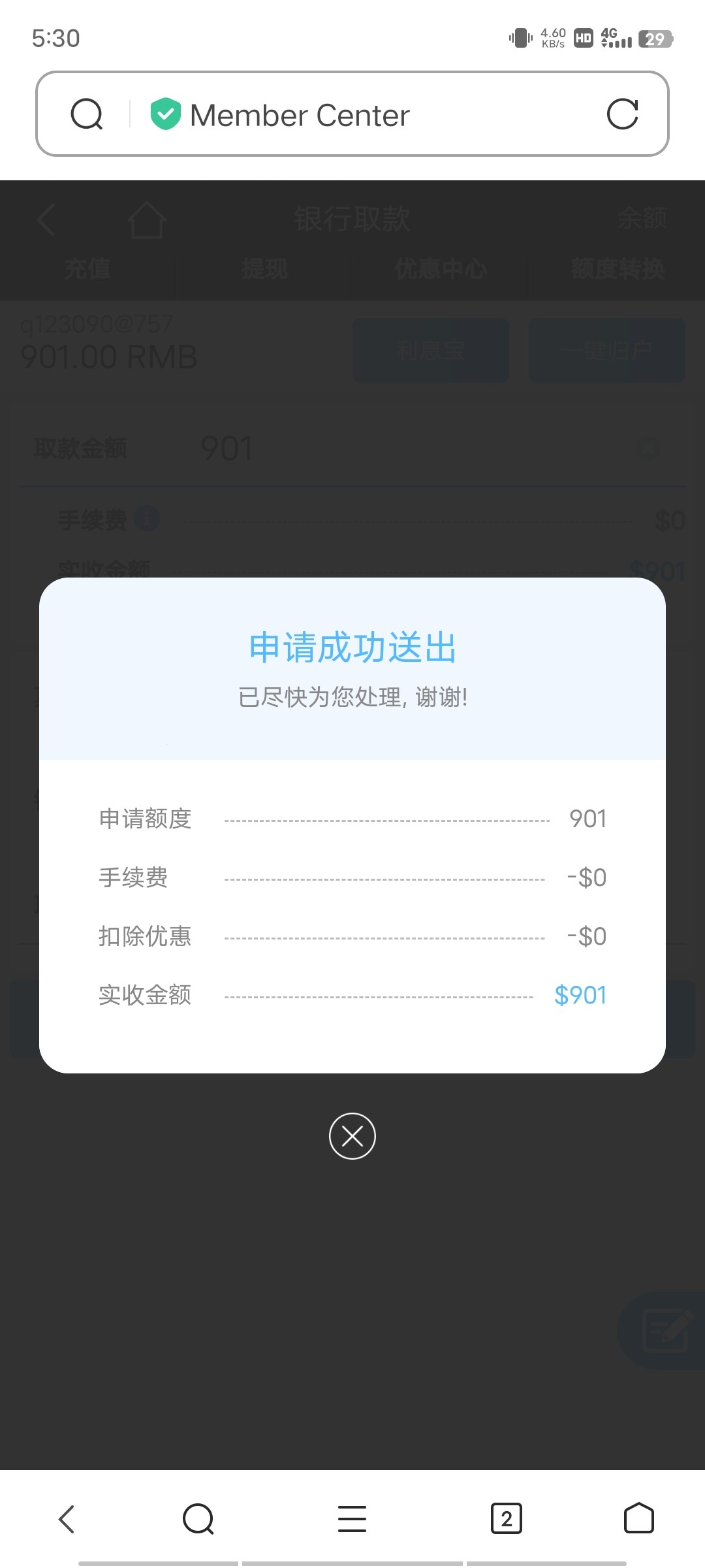 送了58,688提现,到账900