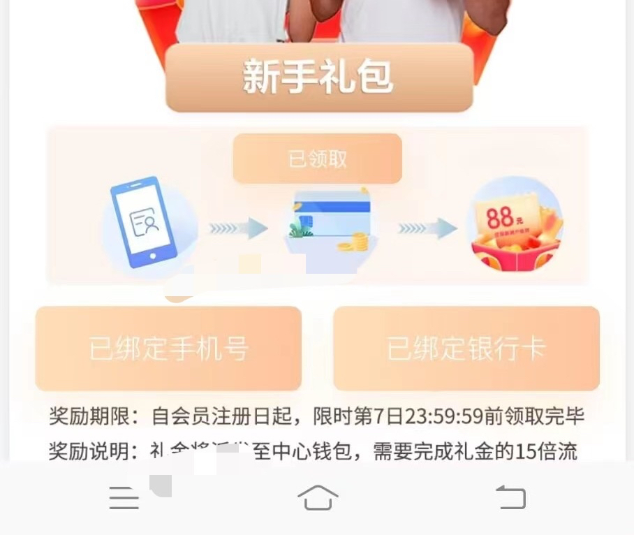 新用户注册绑定手机号绑卡,优惠活动里新手任务领取秒88,15倍流水提现。玩过的换号吧。