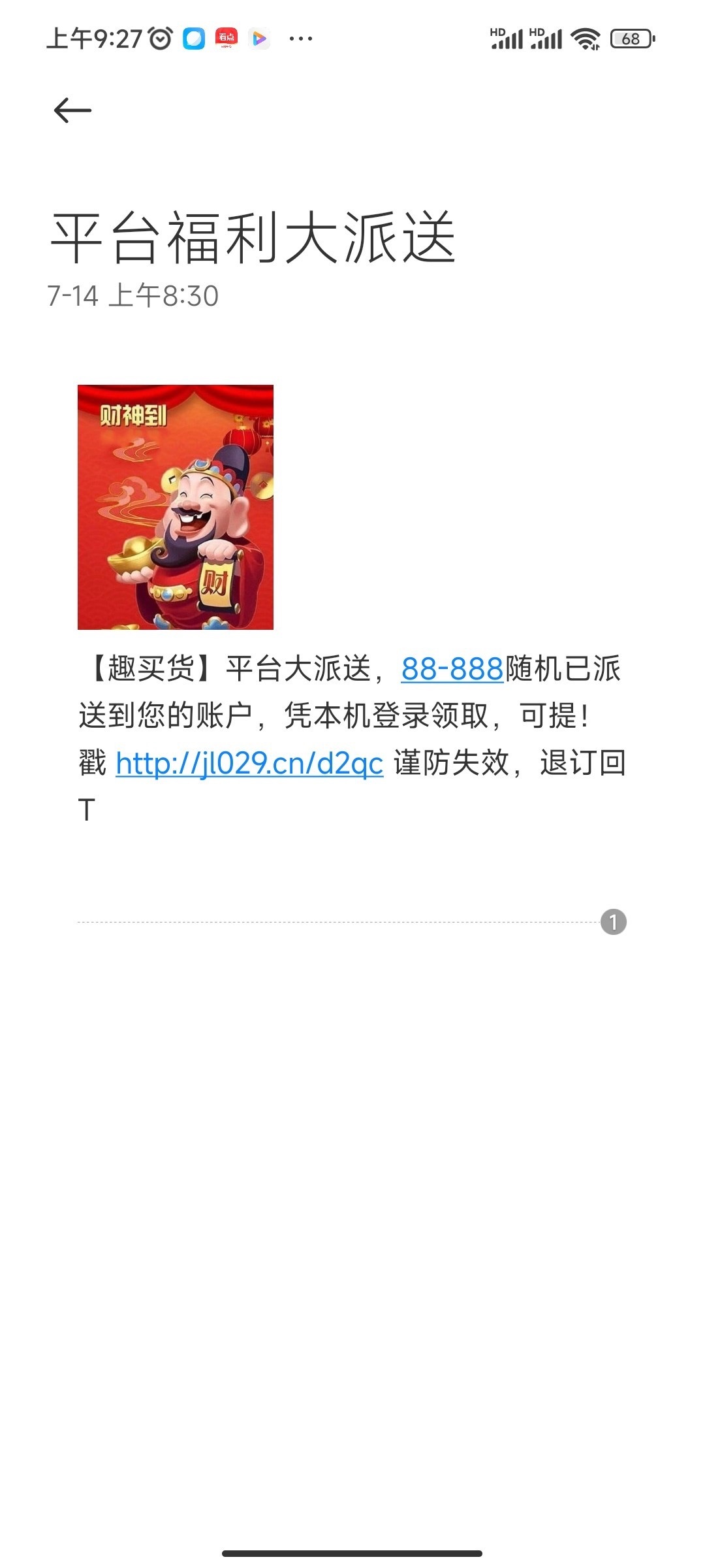 谁发一下链接。我有收到短信