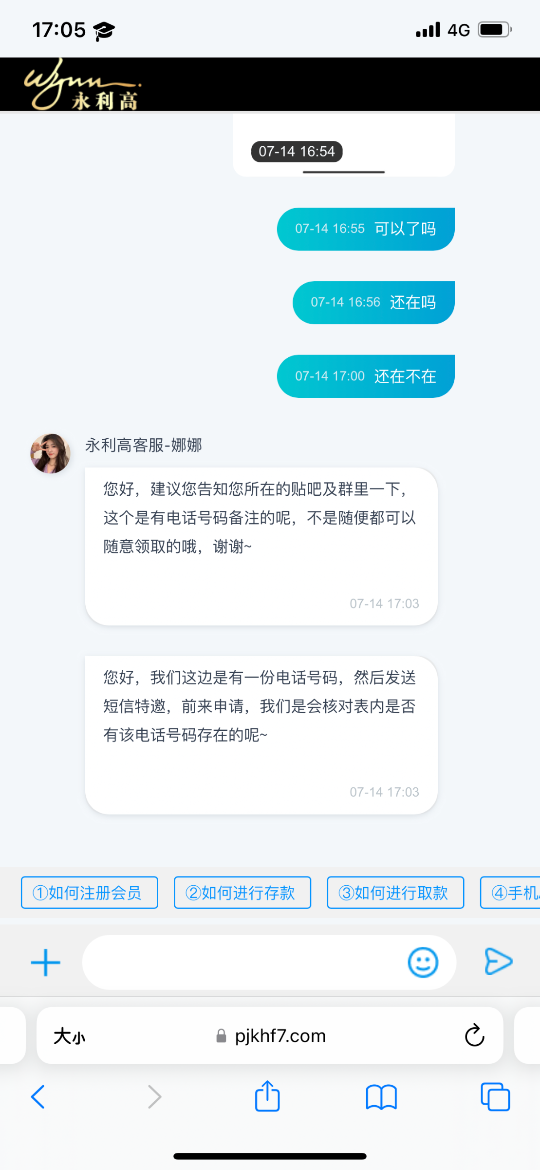新用户手机号注册联系在线客服发账号手机号给他查 碰瓷188特邀彩金 要短信图的话自己保存一下发给他 游戏和提款限制自行询问客服